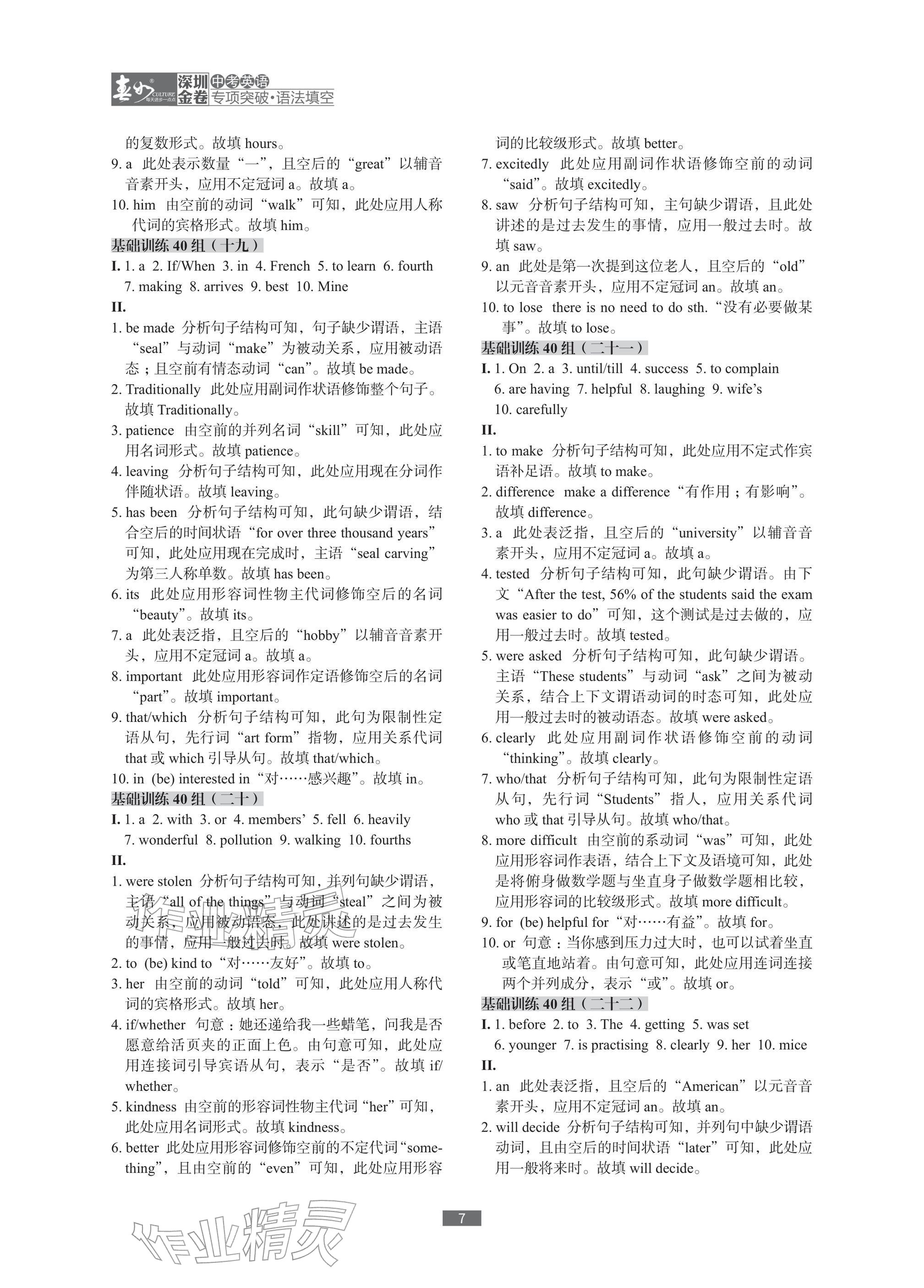 注:目前有些书本章节名称可能整理的还不是很完善,但都是按照顺序排列的,请同学们按照顺序仔细查找。练习册 2025年深圳金卷中考英语专项突破语法填空九年级沪教版 答案主要是用来给同学们做完题方便对答案用的,请勿直接抄袭。