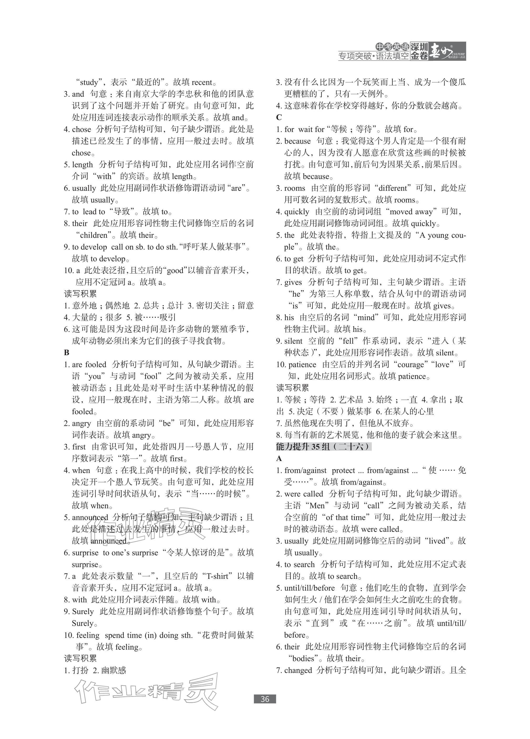 注:目前有些书本章节名称可能整理的还不是很完善,但都是按照顺序排列的,请同学们按照顺序仔细查找。练习册 2025年深圳金卷中考英语专项突破语法填空九年级沪教版 答案主要是用来给同学们做完题方便对答案用的,请勿直接抄袭。
