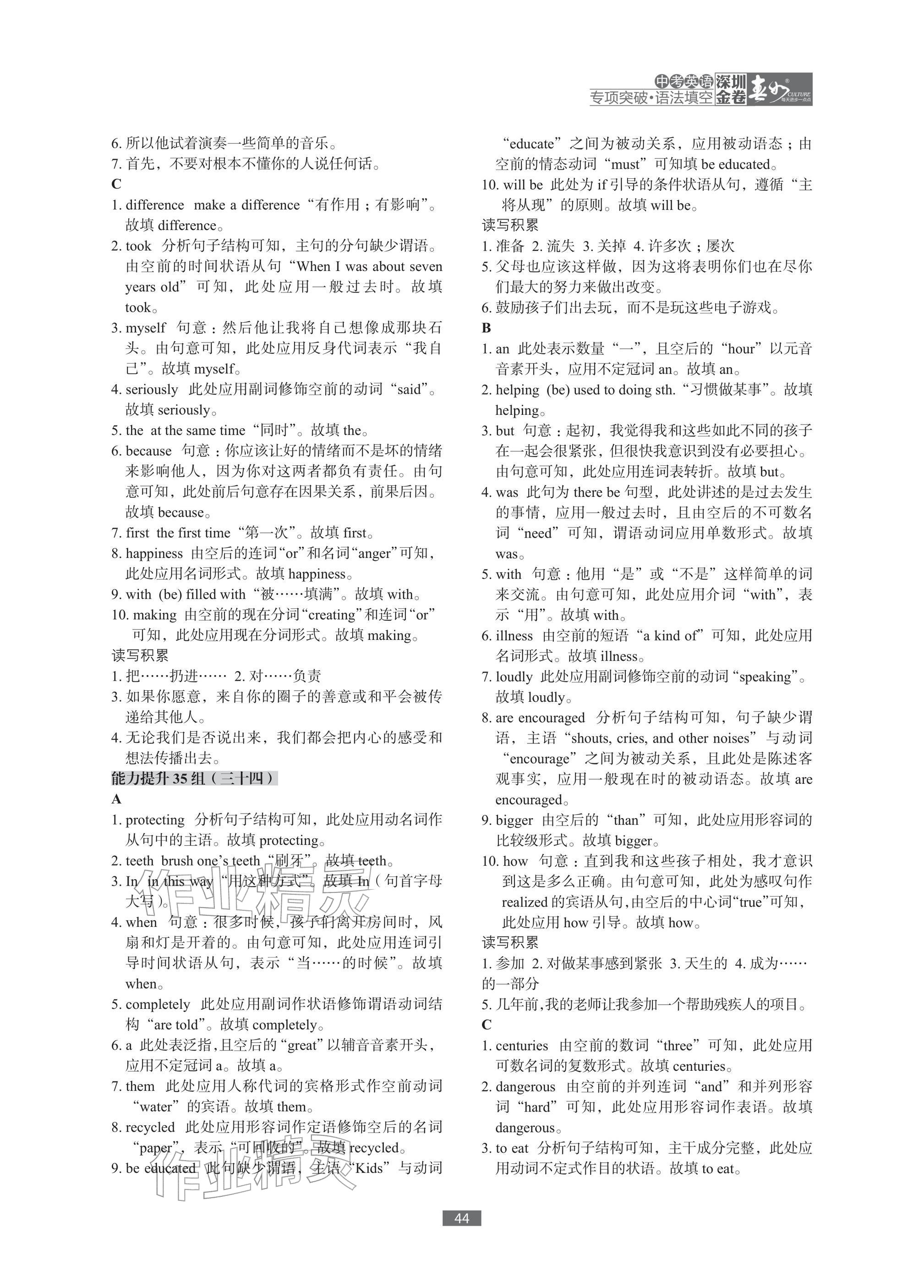 注:目前有些书本章节名称可能整理的还不是很完善,但都是按照顺序排列的,请同学们按照顺序仔细查找。练习册 2025年深圳金卷中考英语专项突破语法填空九年级沪教版 答案主要是用来给同学们做完题方便对答案用的,请勿直接抄袭。