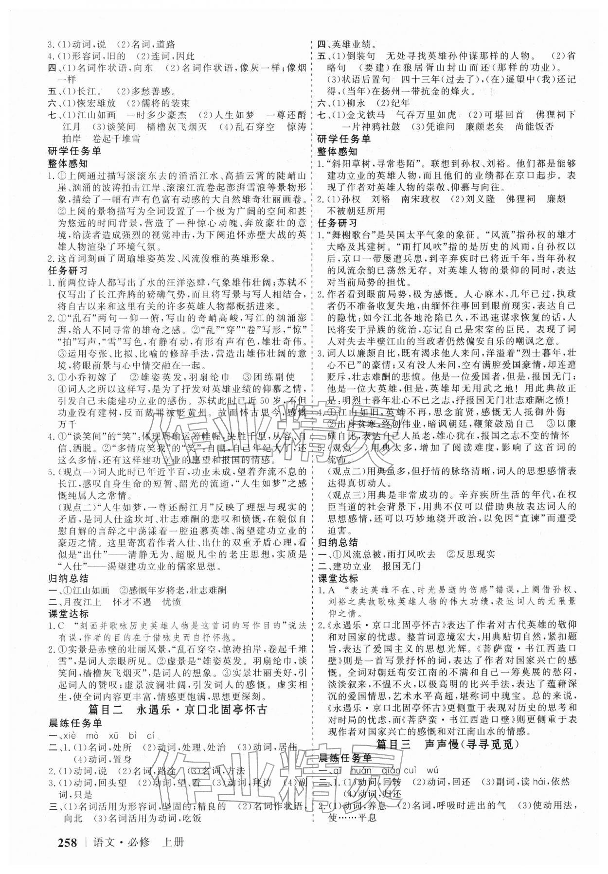 注:目前有些书本章节名称可能整理的还不是很完善,但都是按照顺序排列的,请同学们按照顺序仔细查找。练习册 2025年高考领航山东美术出版社高中语文必修上册人教版 答案主要是用来给同学们做完题方便对答案用的,请勿直接抄袭。