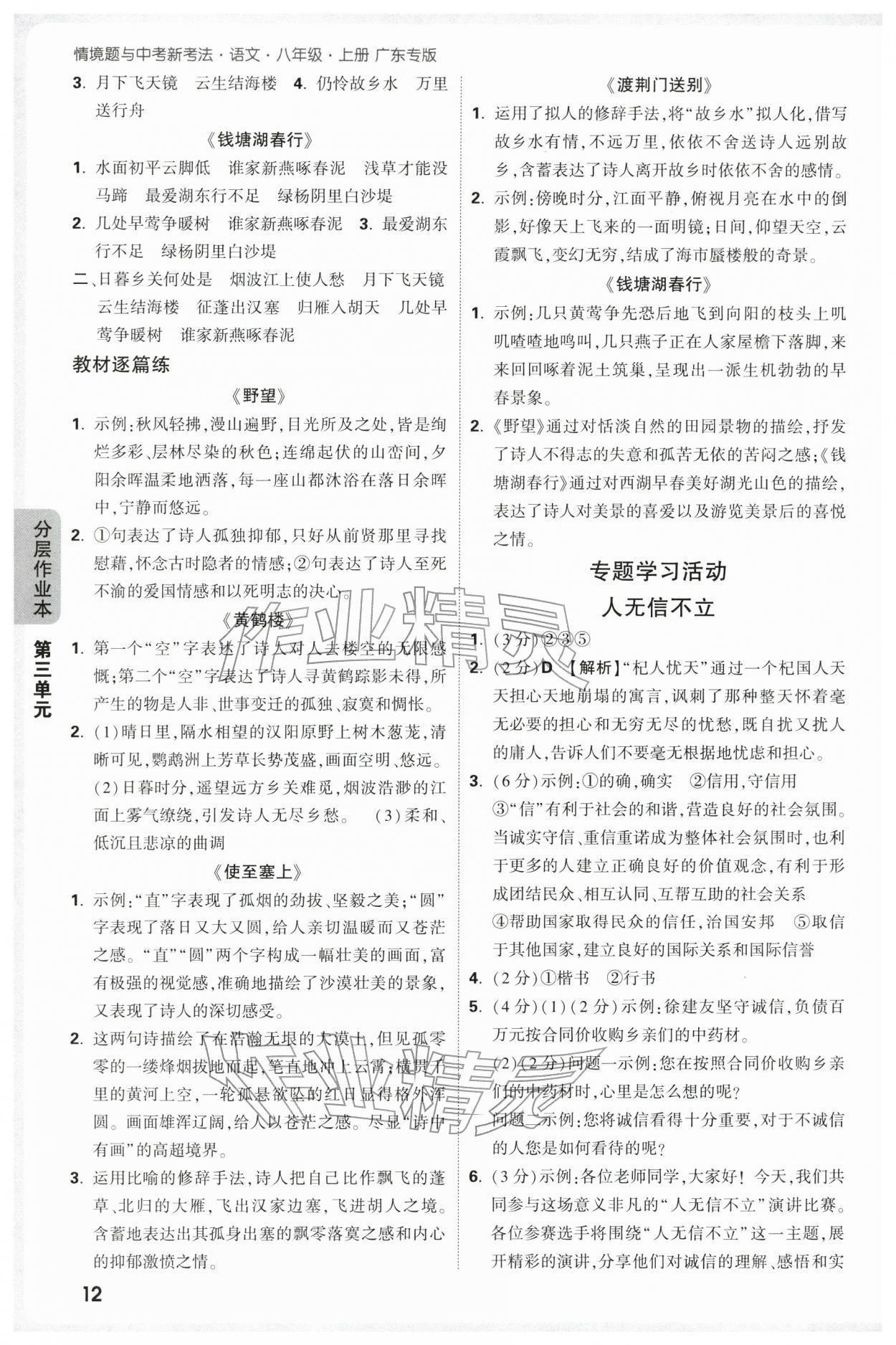 2025年万唯中考情境题八年级语文上册人教版广东专版