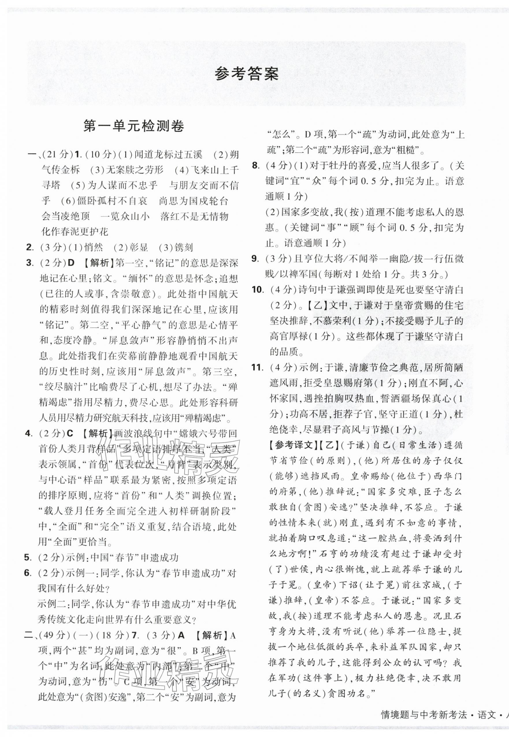 2025年万唯中考情境题八年级语文上册人教版广东专版