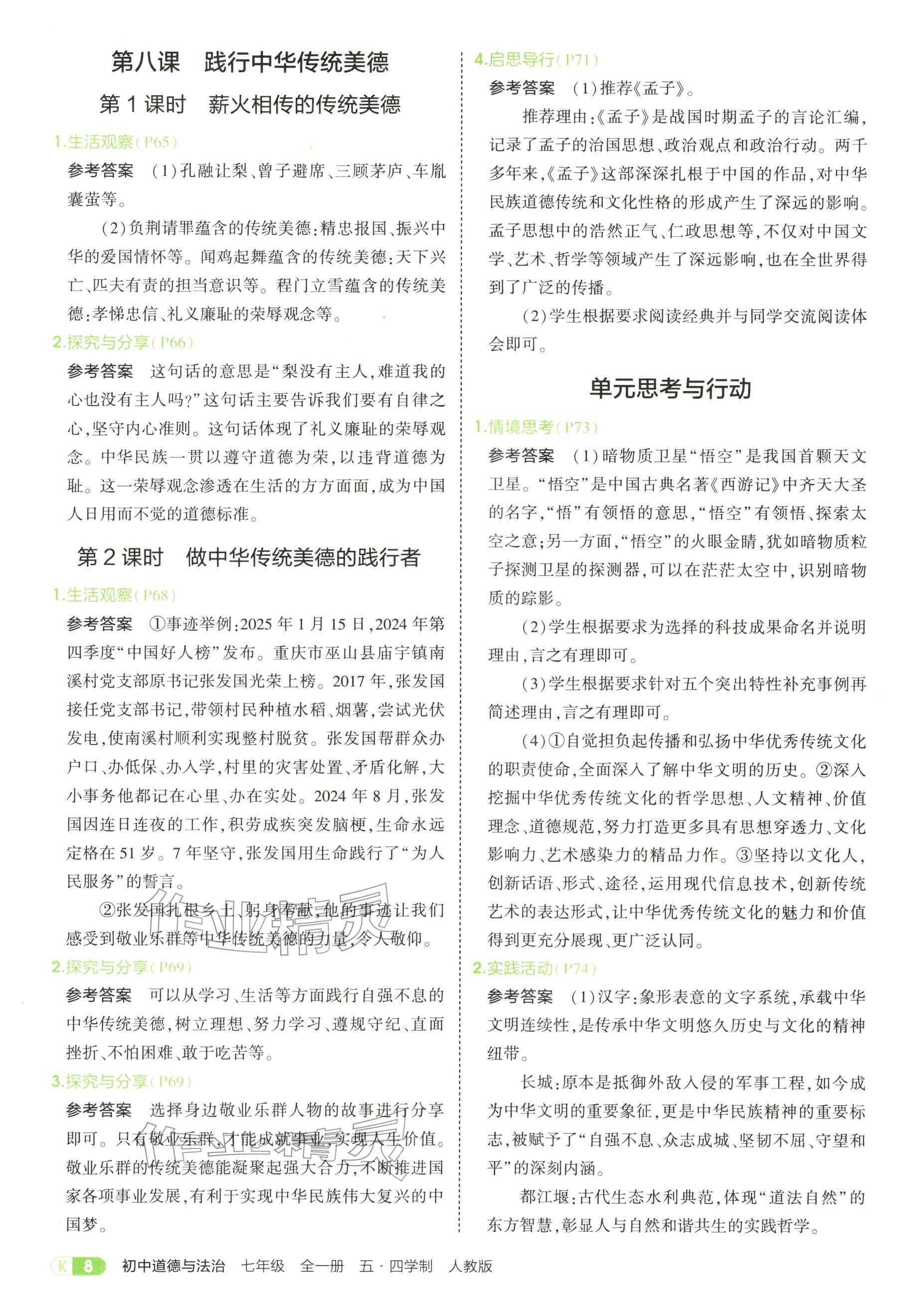 注:目前有些书本章节名称可能整理的还不是很完善,但都是按照顺序排列的,请同学们按照顺序仔细查找。练习册 2025年教材课本七年级道德与法治全一册人教版五四制 答案主要是用来给同学们做完题方便对答案用的,请勿直接抄袭。