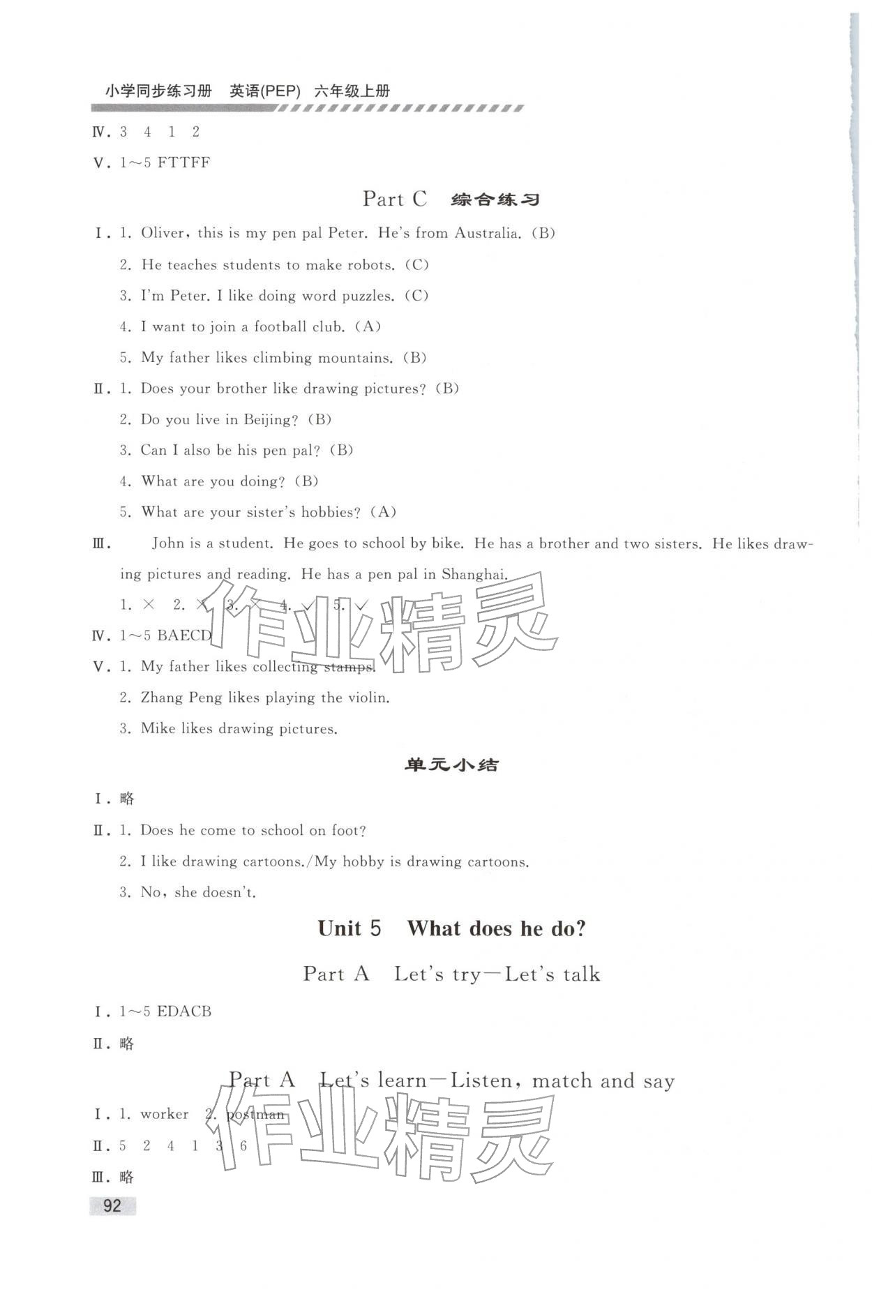 注:目前有些书本章节名称可能整理的还不是很完善,但都是按照顺序排列的,请同学们按照顺序仔细查找。练习册 2025年同步练习册人民教育出版社六年级英语上册人教版山东专版 答案主要是用来给同学们做完题方便对答案用的,请勿直接抄袭。