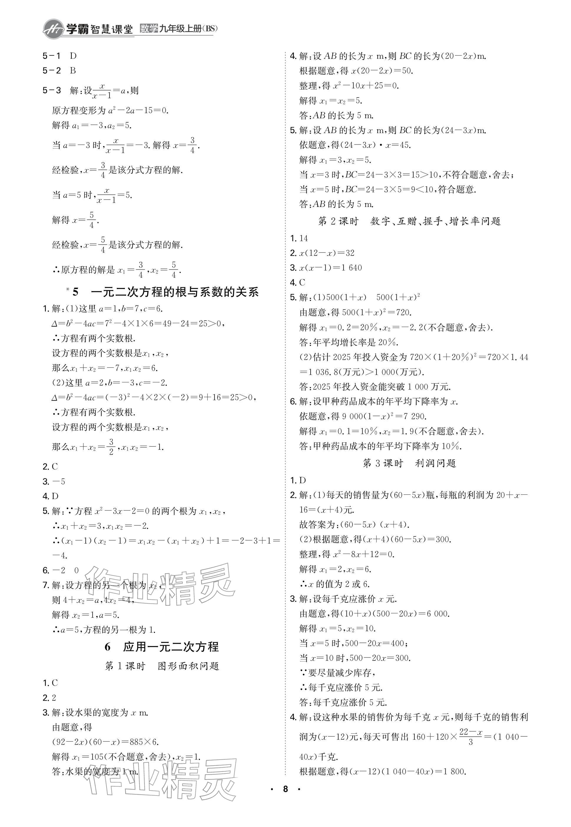 注:目前有些书本章节名称可能整理的还不是很完善,但都是按照顺序排列的,请同学们按照顺序仔细查找。练习册 2025年学霸智慧课堂九年级数学上册北师大版深圳专版 答案主要是用来给同学们做完题方便对答案用的,请勿直接抄袭。