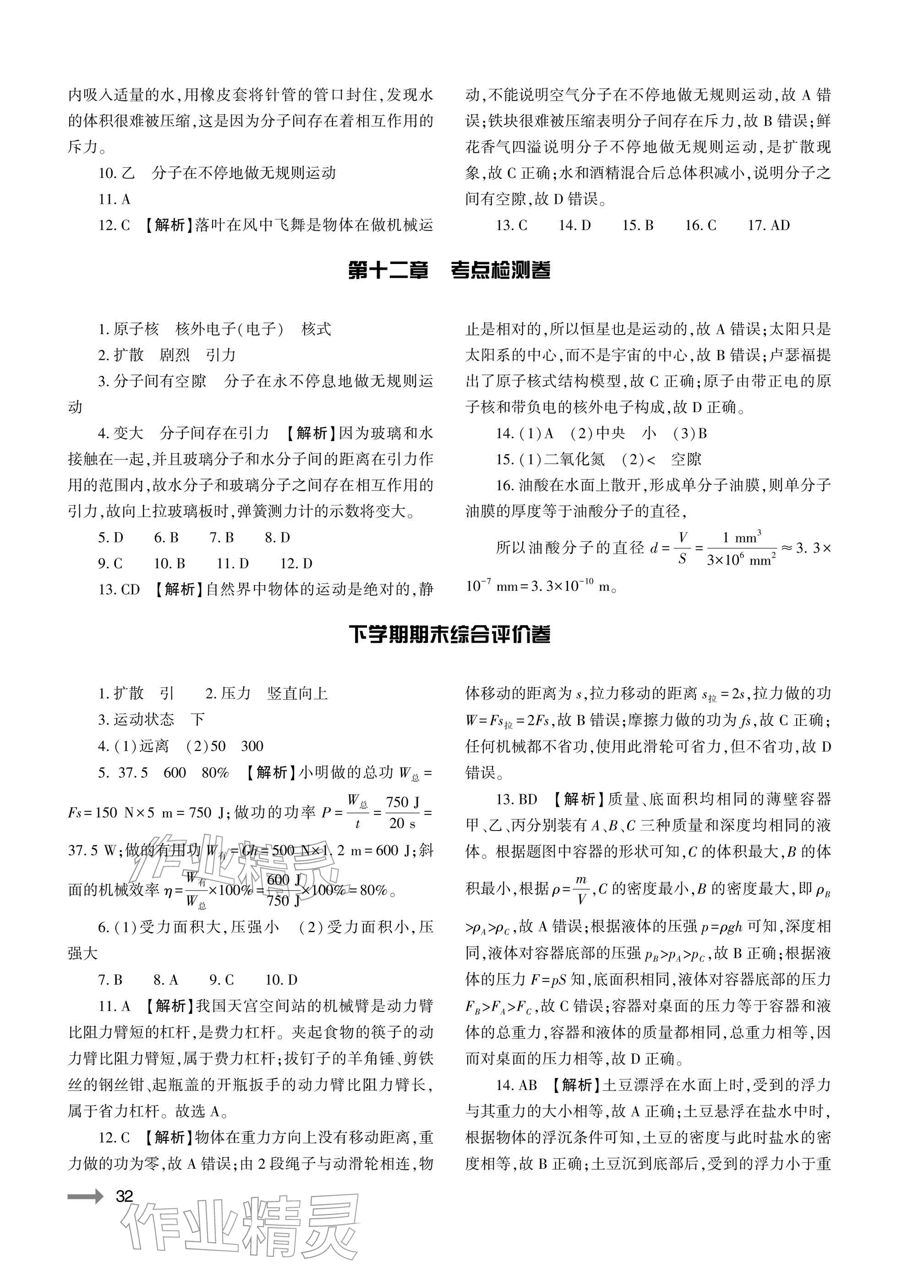 《2025年节节高大象出版社八年级物理全一册沪科版》