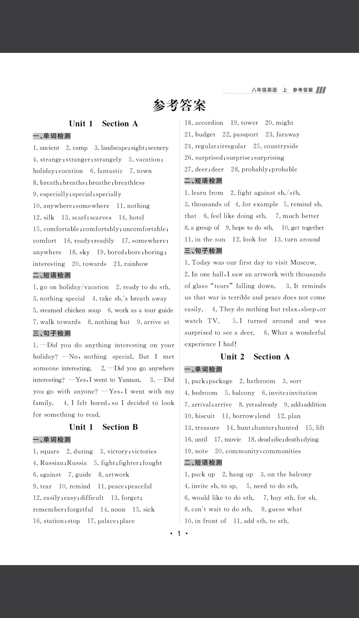 注:目前有些书本章节名称可能整理的还不是很完善,但都是按照顺序排列的,请同学们按照顺序仔细查找。练习册 2025年同行学案学练测八年级英语上册人教版青岛专版 答案主要是用来给同学们做完题方便对答案用的,请勿直接抄袭。