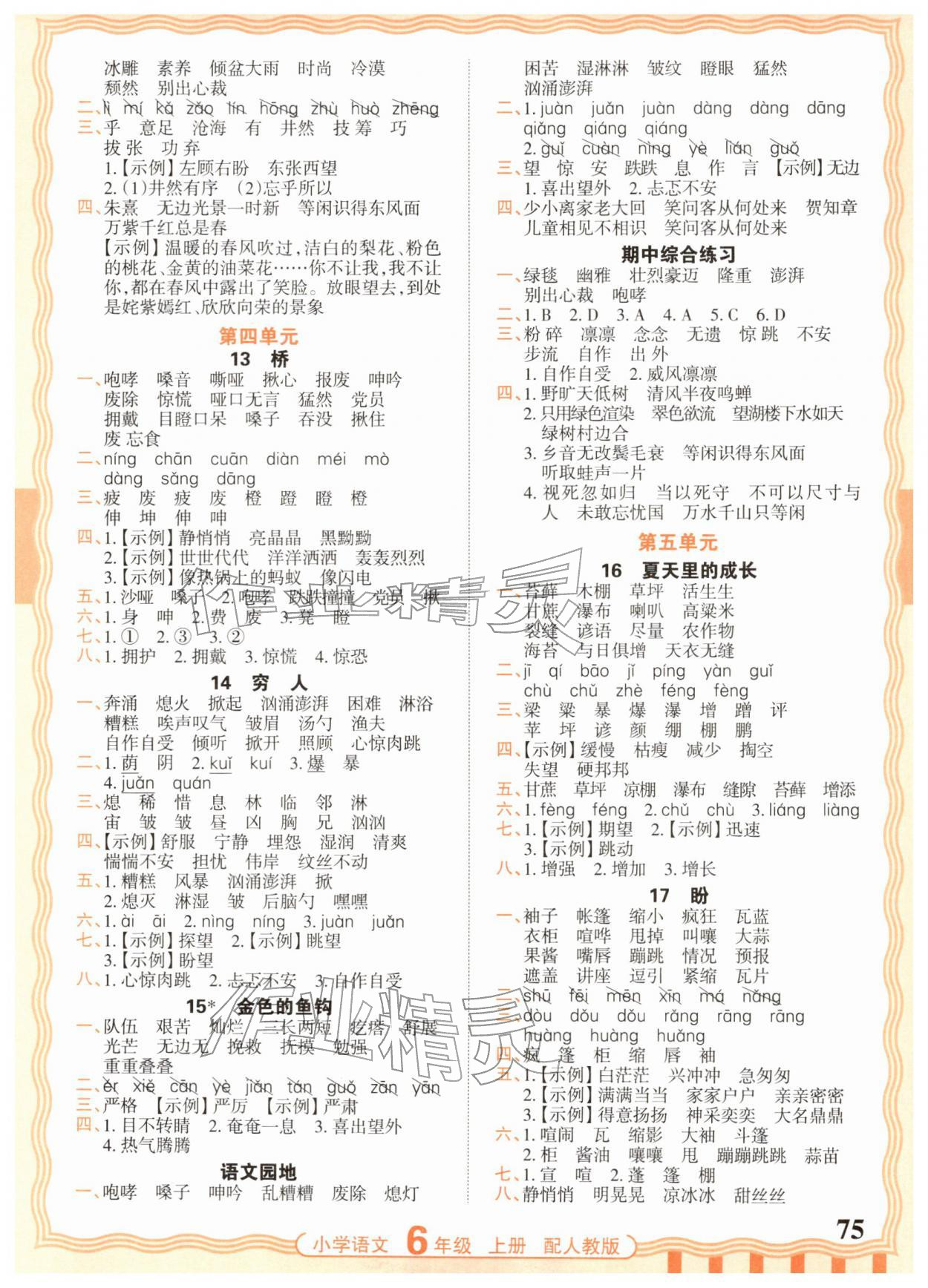 注:目前有些书本章节名称可能整理的还不是很完善,但都是按照顺序排列的,请同学们按照顺序仔细查找。练习册 2025年王朝霞活页默写六年级语文上册人教版 答案主要是用来给同学们做完题方便对答案用的,请勿直接抄袭。