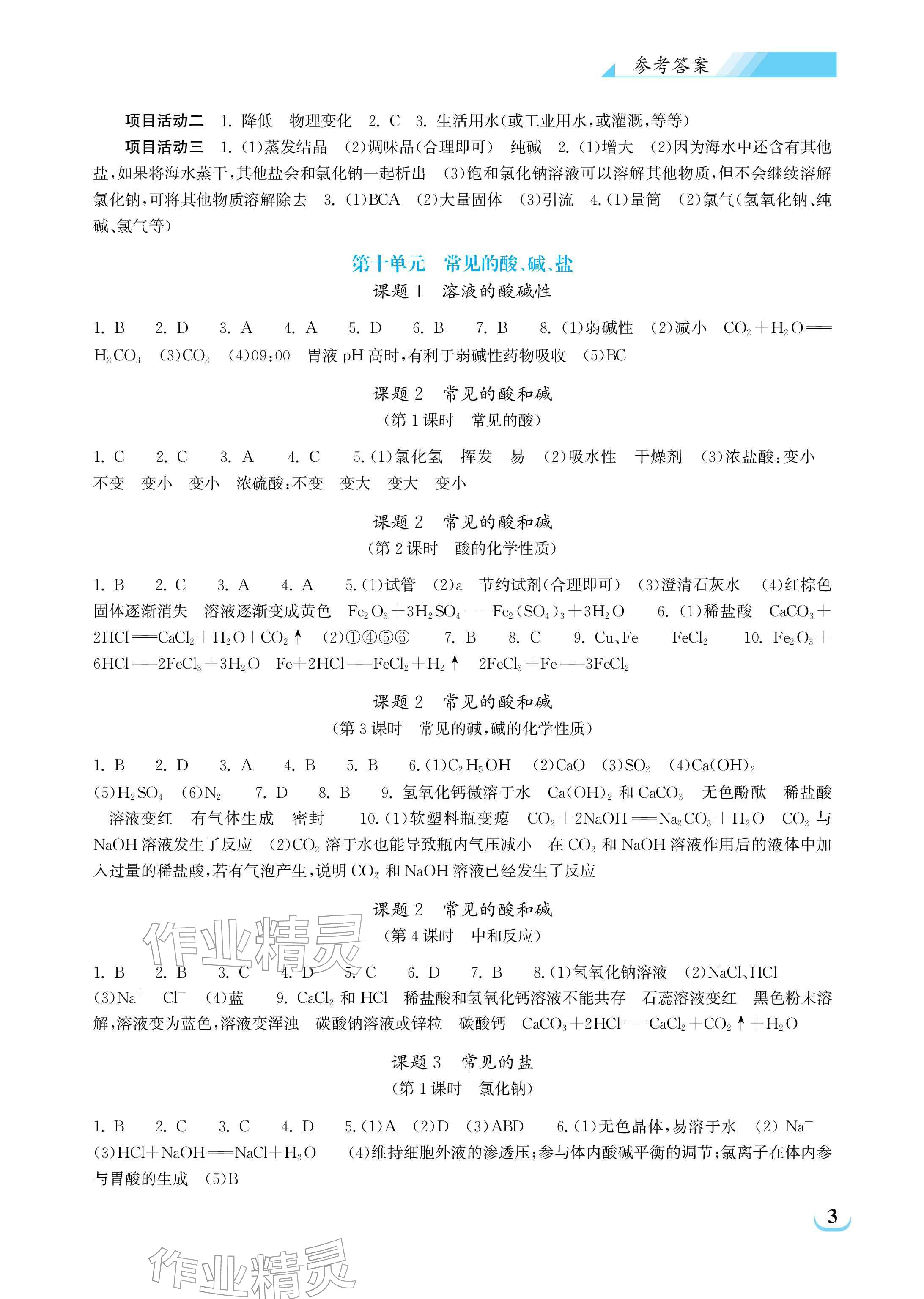 注:目前有些书本章节名称可能整理的还不是很完善,但都是按照顺序排列的,请同学们按照顺序仔细查找。练习册 2026年长江作业本同步练习册九年级化学下册人教版 答案主要是用来给同学们做完题方便对答案用的,请勿直接抄袭。