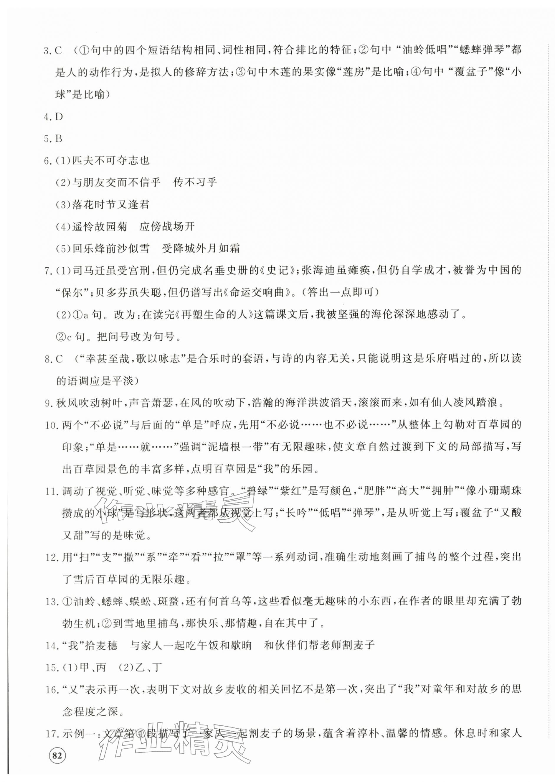 注:目前有些书本章节名称可能整理的还不是很完善,但都是按照顺序排列的,请同学们按照顺序仔细查找。练习册 2025年精练课堂分层作业七年级语文上册人教版临沂专版 答案主要是用来给同学们做完题方便对答案用的,请勿直接抄袭。