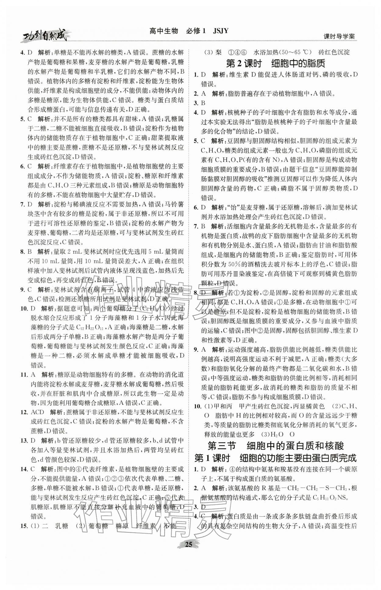 注:目前有些书本章节名称可能整理的还不是很完善,但都是按照顺序排列的,请同学们按照顺序仔细查找。练习册 2025年功到自然成课时导学案高中生物必修1苏教版 答案主要是用来给同学们做完题方便对答案用的,请勿直接抄袭。