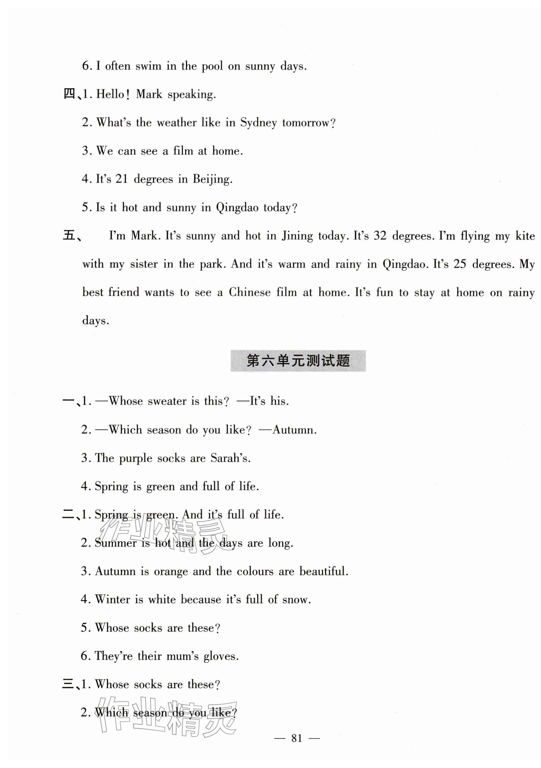 注:目前有些书本章节名称可能整理的还不是很完善,但都是按照顺序排列的,请同学们按照顺序仔细查找。练习册 2025年单元自测试卷四年级英语上学期人教版 答案主要是用来给同学们做完题方便对答案用的,请勿直接抄袭。