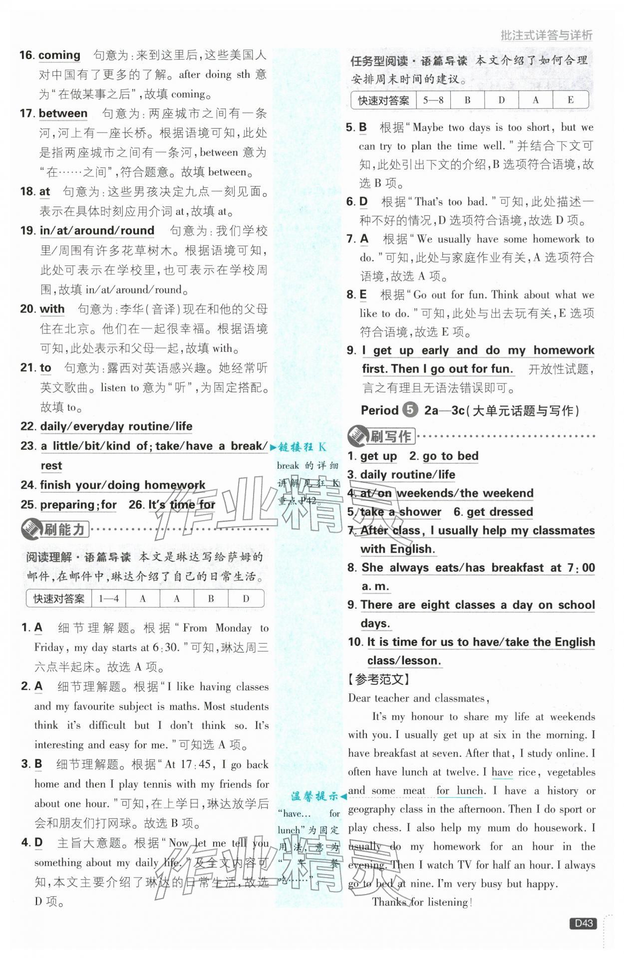 注:目前有些书本章节名称可能整理的还不是很完善,但都是按照顺序排列的,请同学们按照顺序仔细查找。练习册 2025年初中必刷题七年级英语上册人教版浙江专版 答案主要是用来给同学们做完题方便对答案用的,请勿直接抄袭。