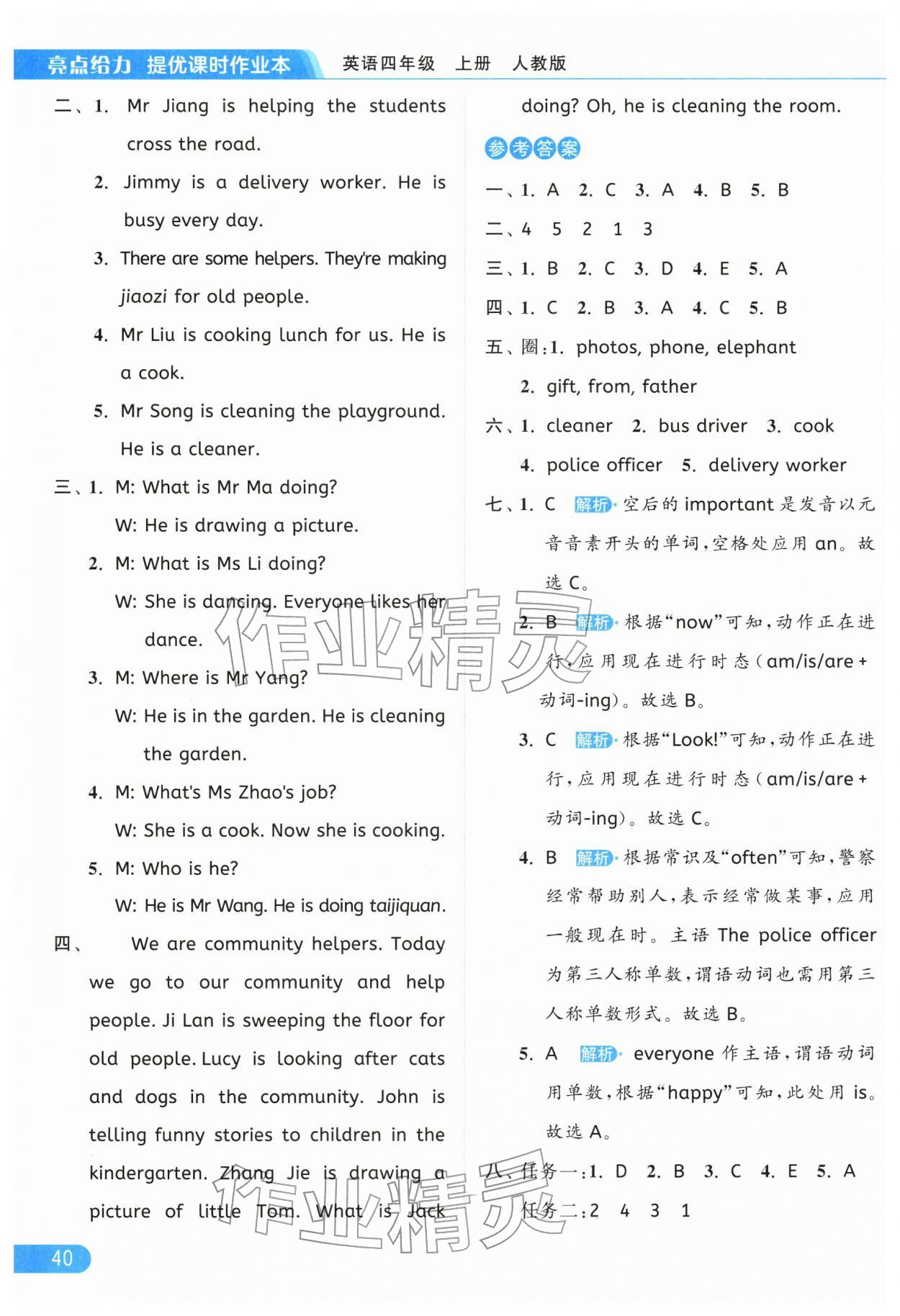 注:目前有些书本章节名称可能整理的还不是很完善,但都是按照顺序排列的,请同学们按照顺序仔细查找。练习册 2025年亮点给力提优课时作业本四年级英语上册人教版 答案主要是用来给同学们做完题方便对答案用的,请勿直接抄袭。