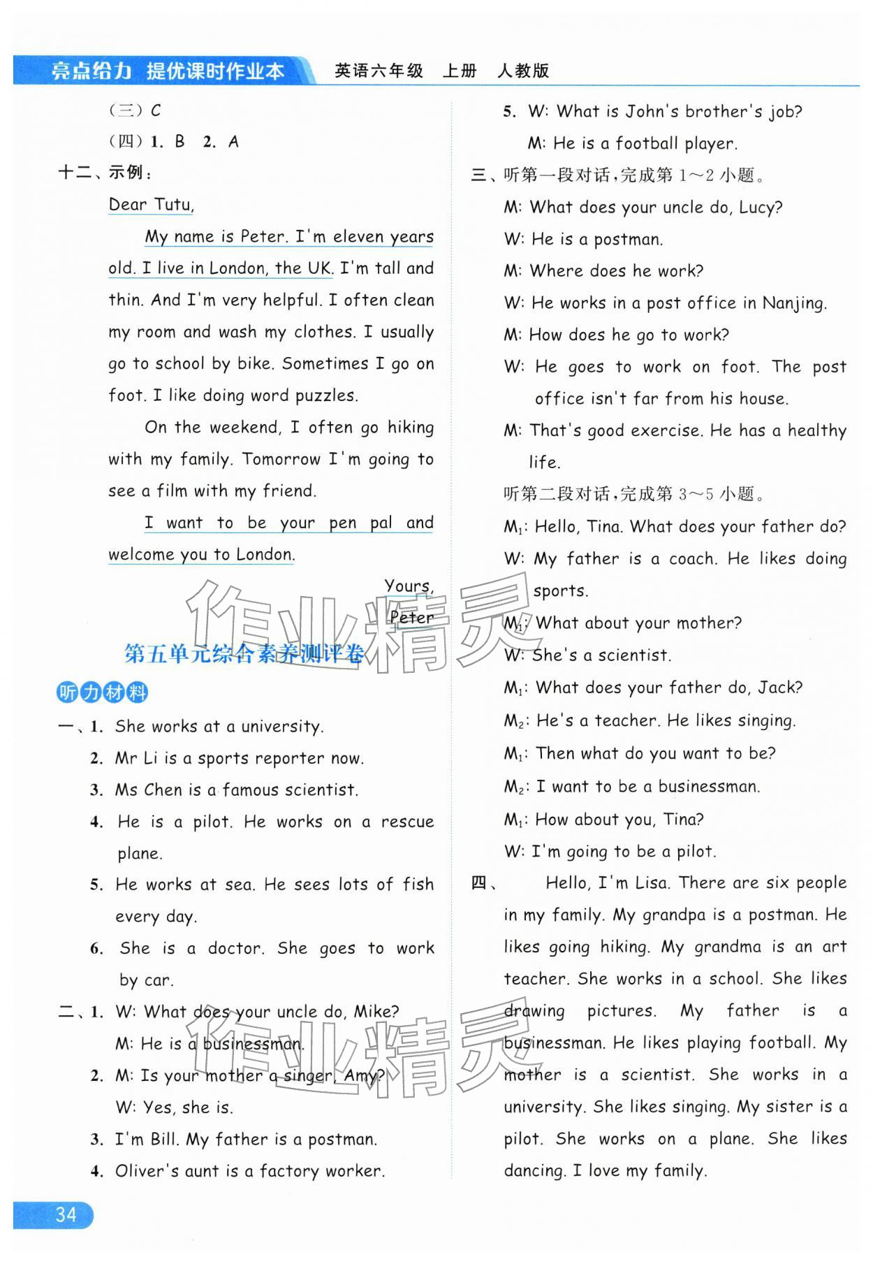 注:目前有些书本章节名称可能整理的还不是很完善,但都是按照顺序排列的,请同学们按照顺序仔细查找。练习册 2025年亮点给力提优课时作业本六年级英语上册人教版 答案主要是用来给同学们做完题方便对答案用的,请勿直接抄袭。