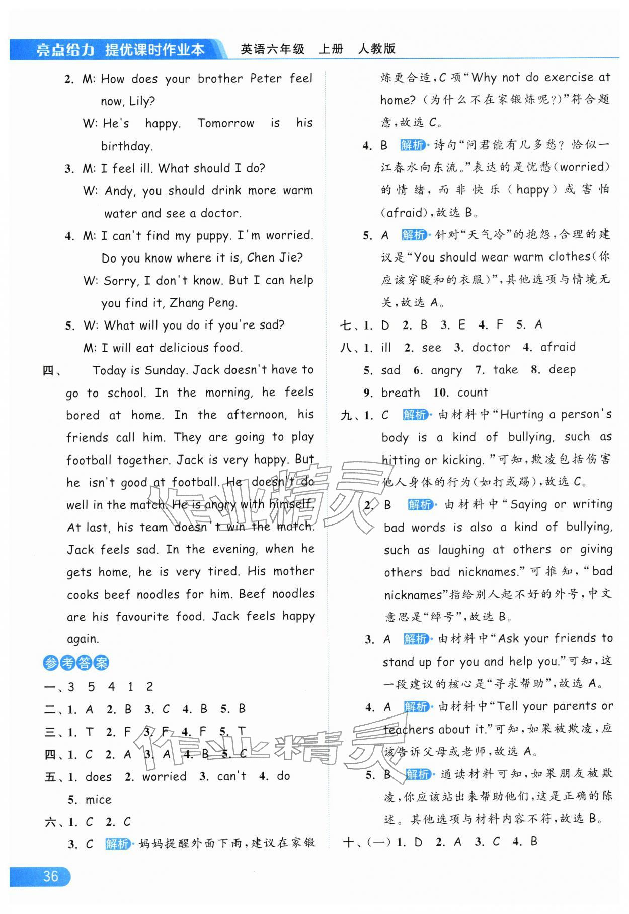 注:目前有些书本章节名称可能整理的还不是很完善,但都是按照顺序排列的,请同学们按照顺序仔细查找。练习册 2025年亮点给力提优课时作业本六年级英语上册人教版 答案主要是用来给同学们做完题方便对答案用的,请勿直接抄袭。