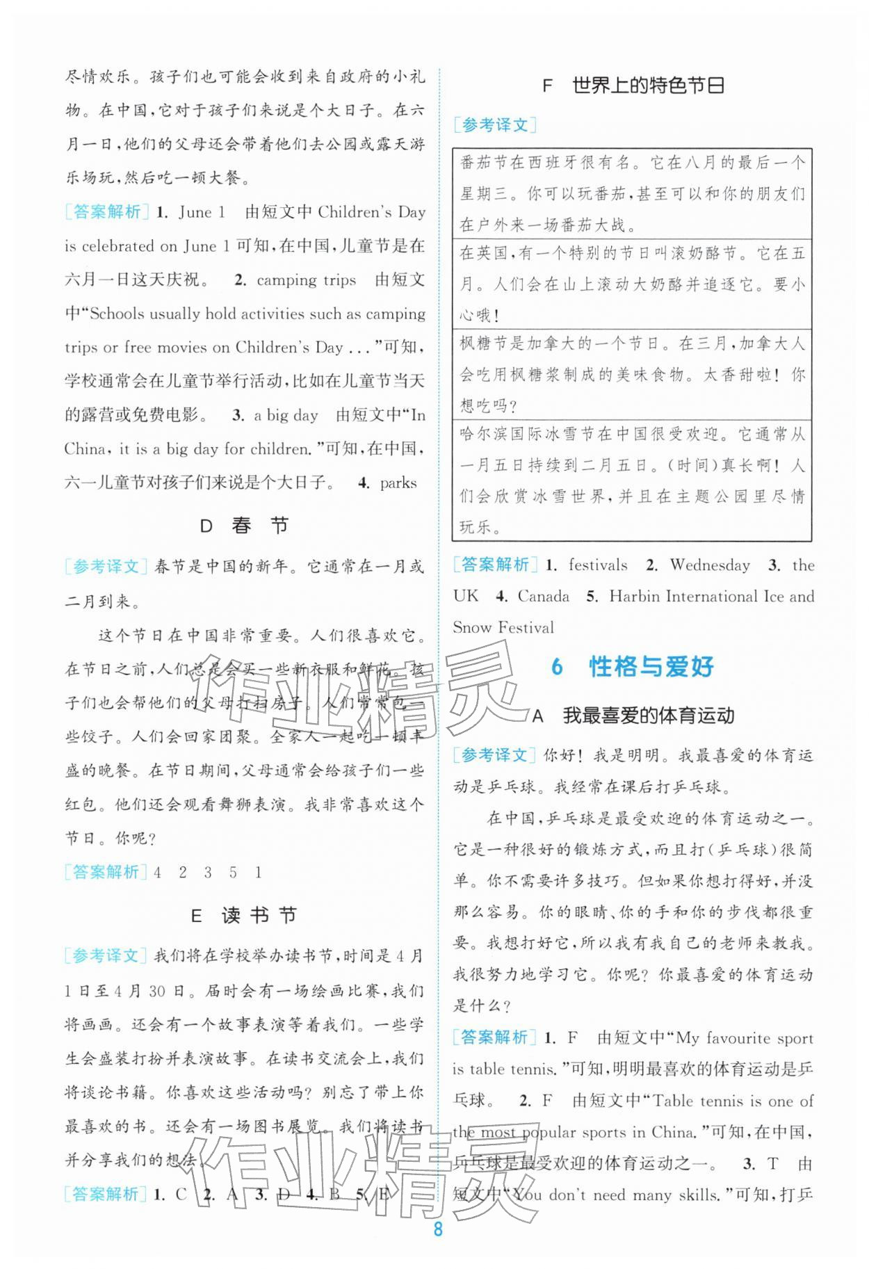 注:目前有些书本章节名称可能整理的还不是很完善,但都是按照顺序排列的,请同学们按照顺序仔细查找。练习册 2025年通城学典赢在阅读四年级英语上册译林版 答案主要是用来给同学们做完题方便对答案用的,请勿直接抄袭。