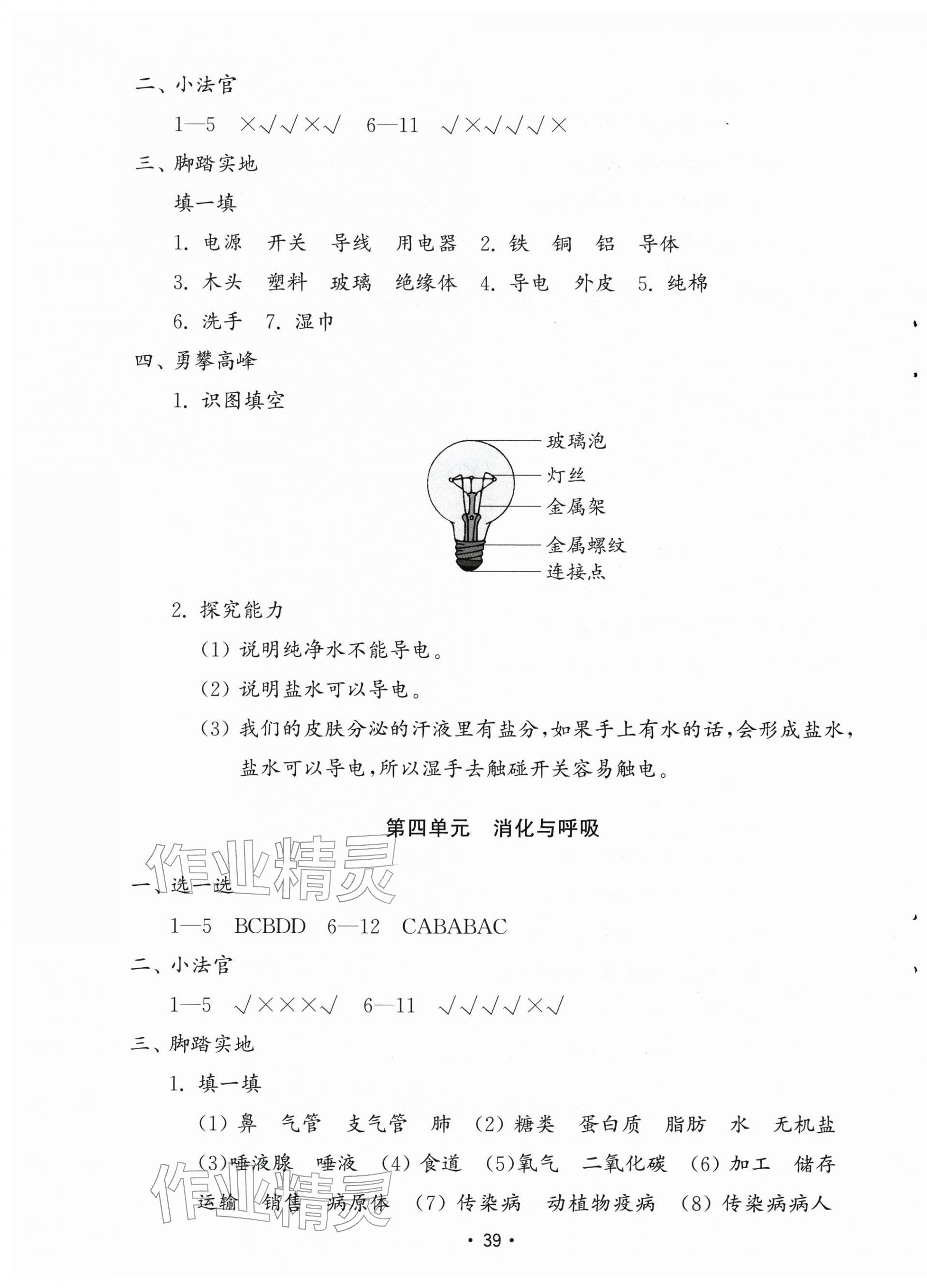 注:目前有些书本章节名称可能整理的还不是很完善,但都是按照顺序排列的,请同学们按照顺序仔细查找。练习册 2025年小学基础训练山东教育出版社四年级科学上册青岛版五四制烟台专版 答案主要是用来给同学们做完题方便对答案用的,请勿直接抄袭。