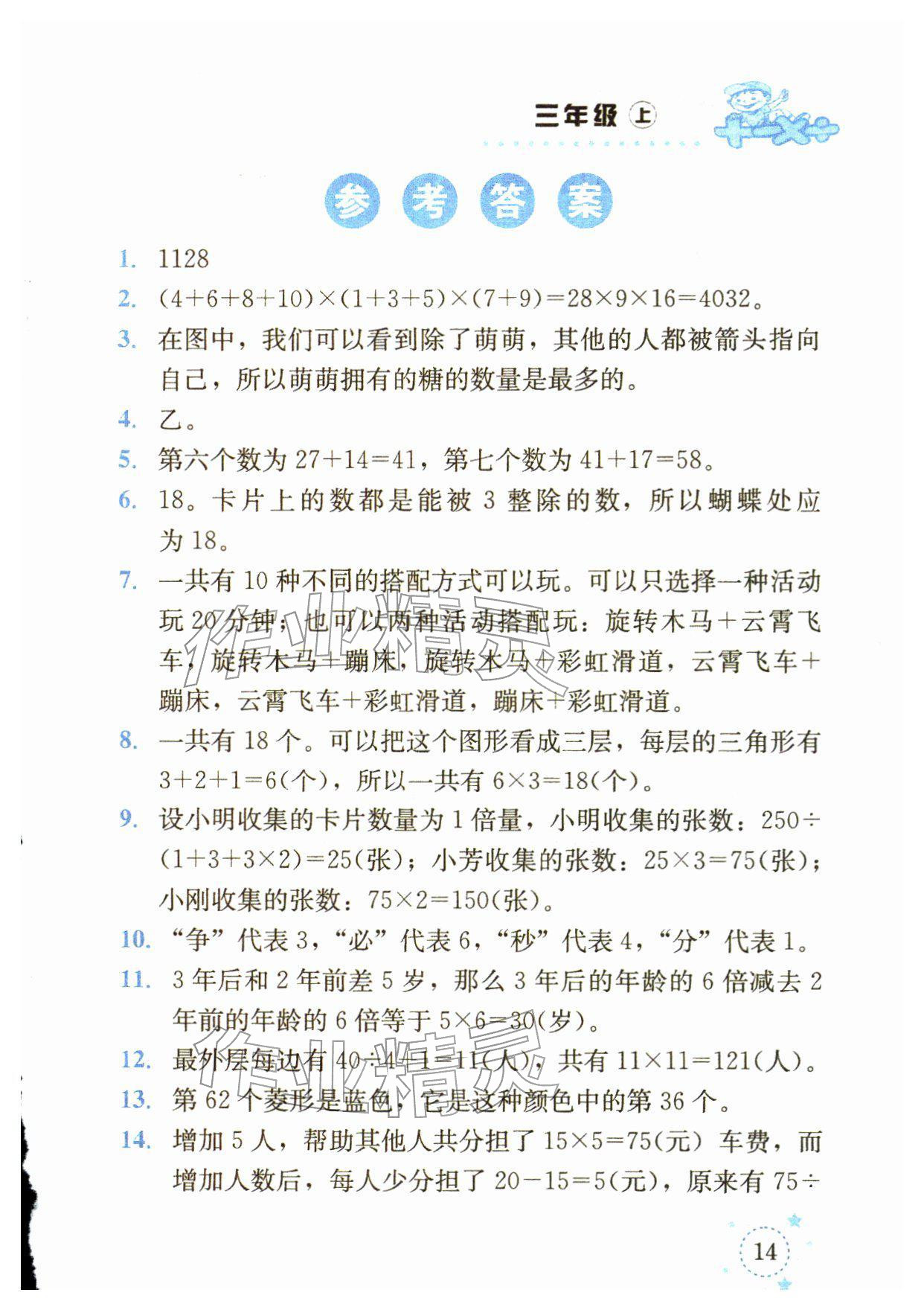 注:目前有些书本章节名称可能整理的还不是很完善,但都是按照顺序排列的,请同学们按照顺序仔细查找。练习册 2025年解决问题专项训练三年级数学上册西师大版 答案主要是用来给同学们做完题方便对答案用的,请勿直接抄袭。