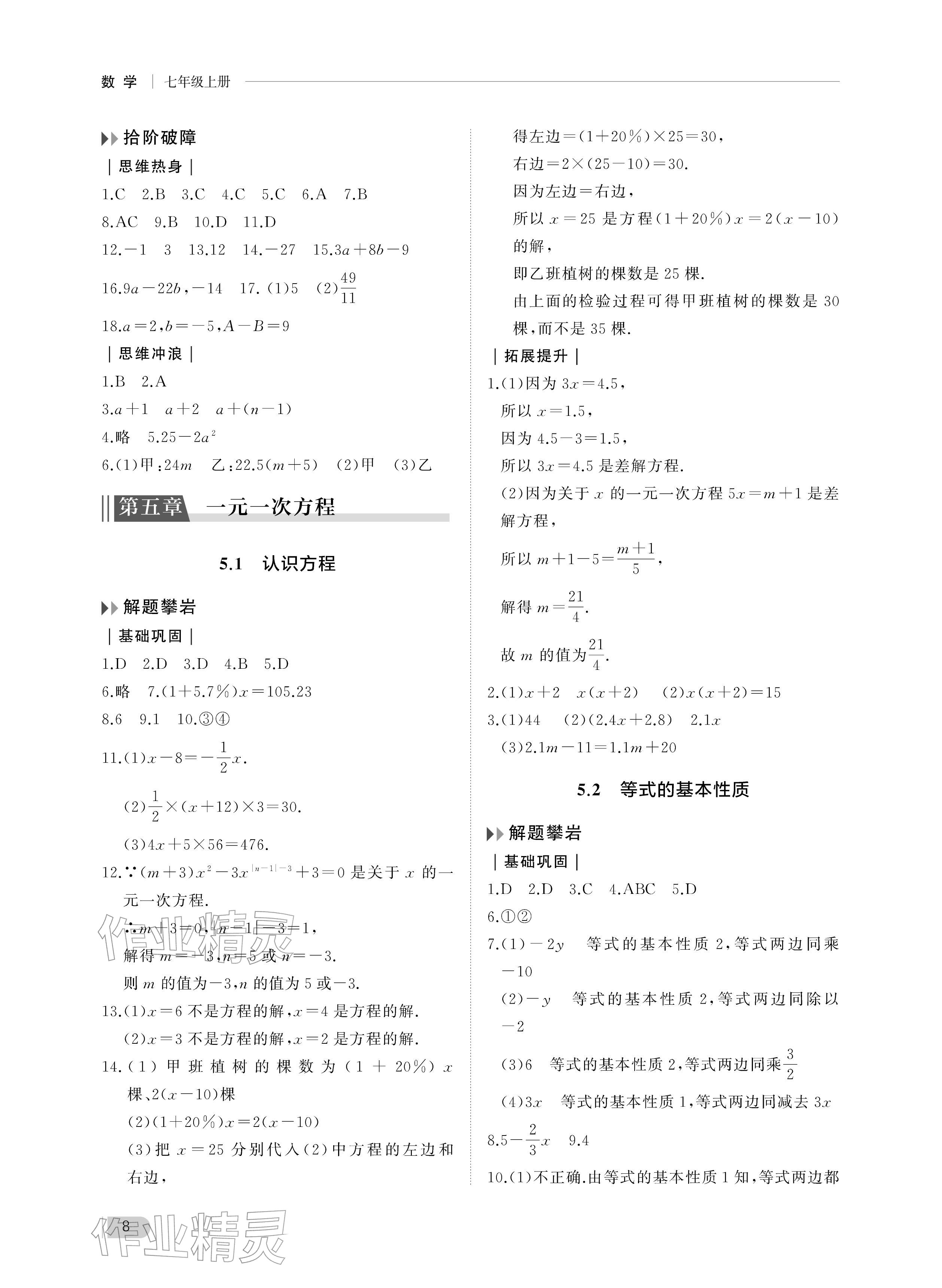注:目前有些书本章节名称可能整理的还不是很完善,但都是按照顺序排列的,请同学们按照顺序仔细查找。练习册 2025年行知天下七年级数学上册青岛版 答案主要是用来给同学们做完题方便对答案用的,请勿直接抄袭。