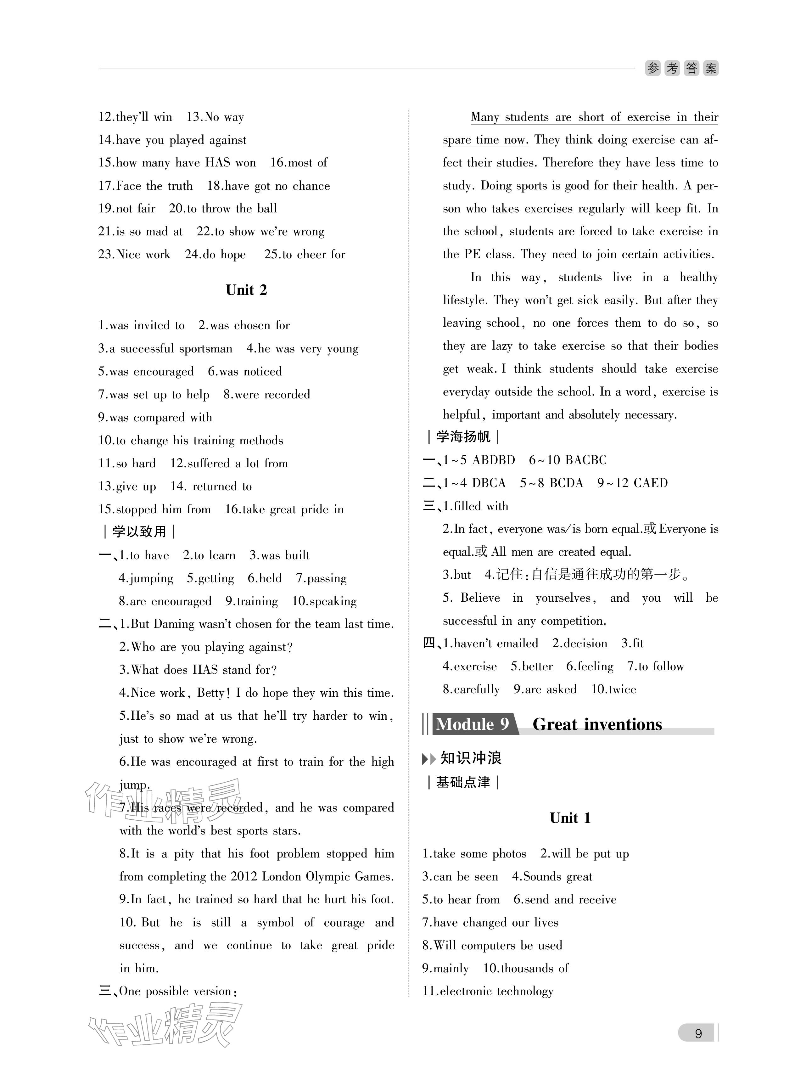 注:目前有些书本章节名称可能整理的还不是很完善,但都是按照顺序排列的,请同学们按照顺序仔细查找。练习册 2025年行知天下九年级英语上册外研版 答案主要是用来给同学们做完题方便对答案用的,请勿直接抄袭。