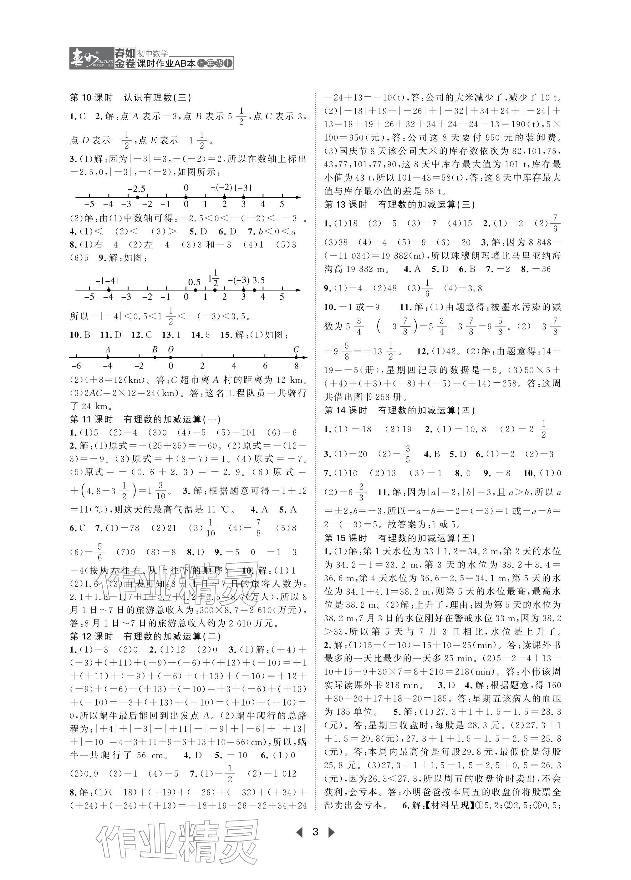 2025年春如金卷课时作业AB本七年级数学上册北师大版 参考答案第3页
