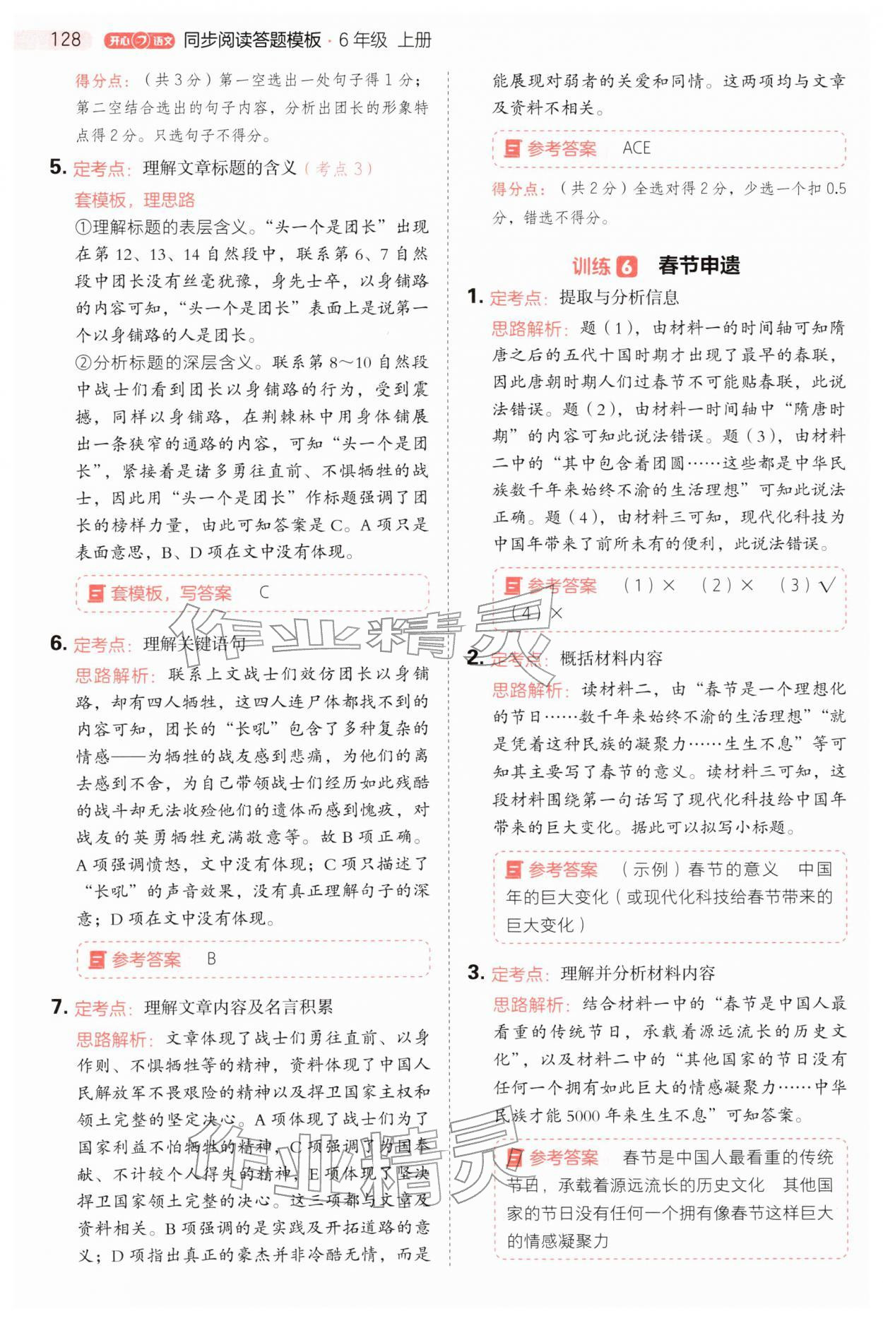 2025年同步阅读答题模板六年级语文上册人教版