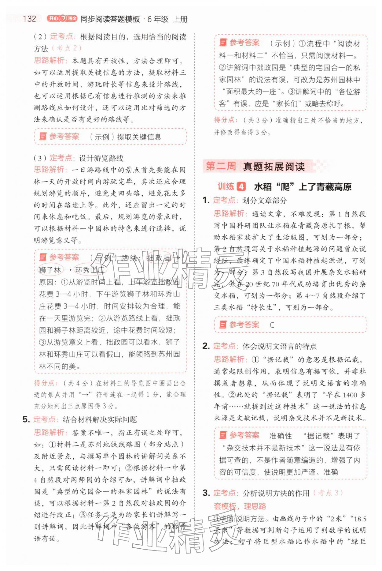 2025年同步阅读答题模板六年级语文上册人教版