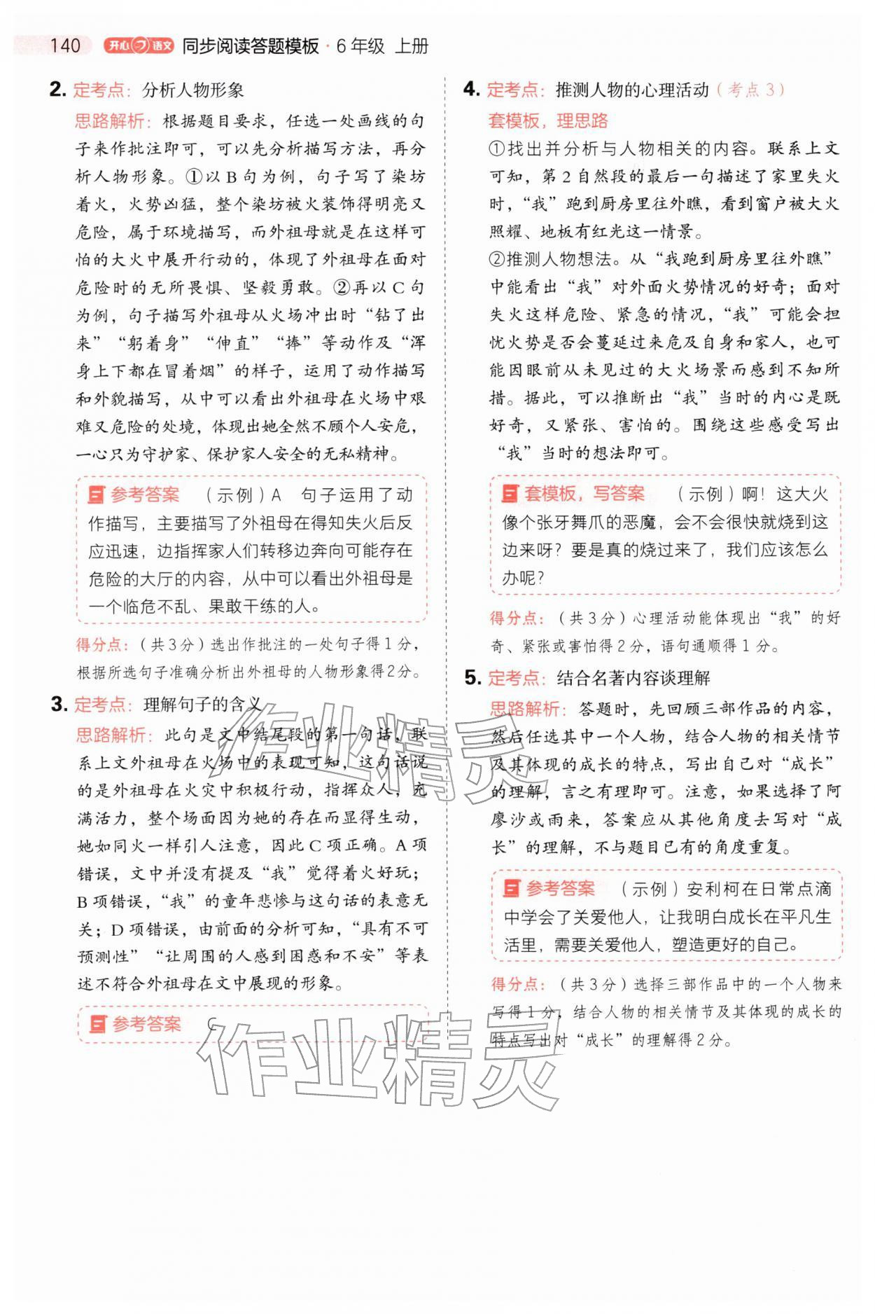 2025年同步阅读答题模板六年级语文上册人教版