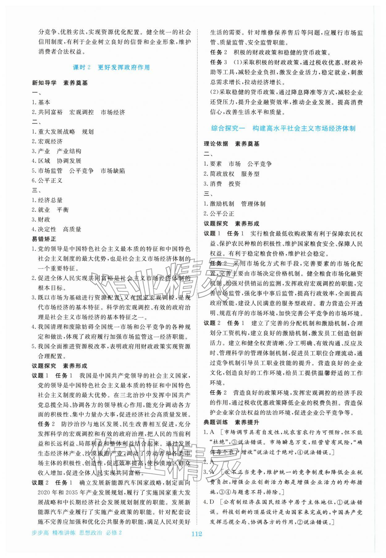 注:目前有些书本章节名称可能整理的还不是很完善,但都是按照顺序排列的,请同学们按照顺序仔细查找。练习册2025年步步高精准讲练思想政治必修2答案主要是用来给同学们做完题方便对答案用的,请勿直接抄袭。