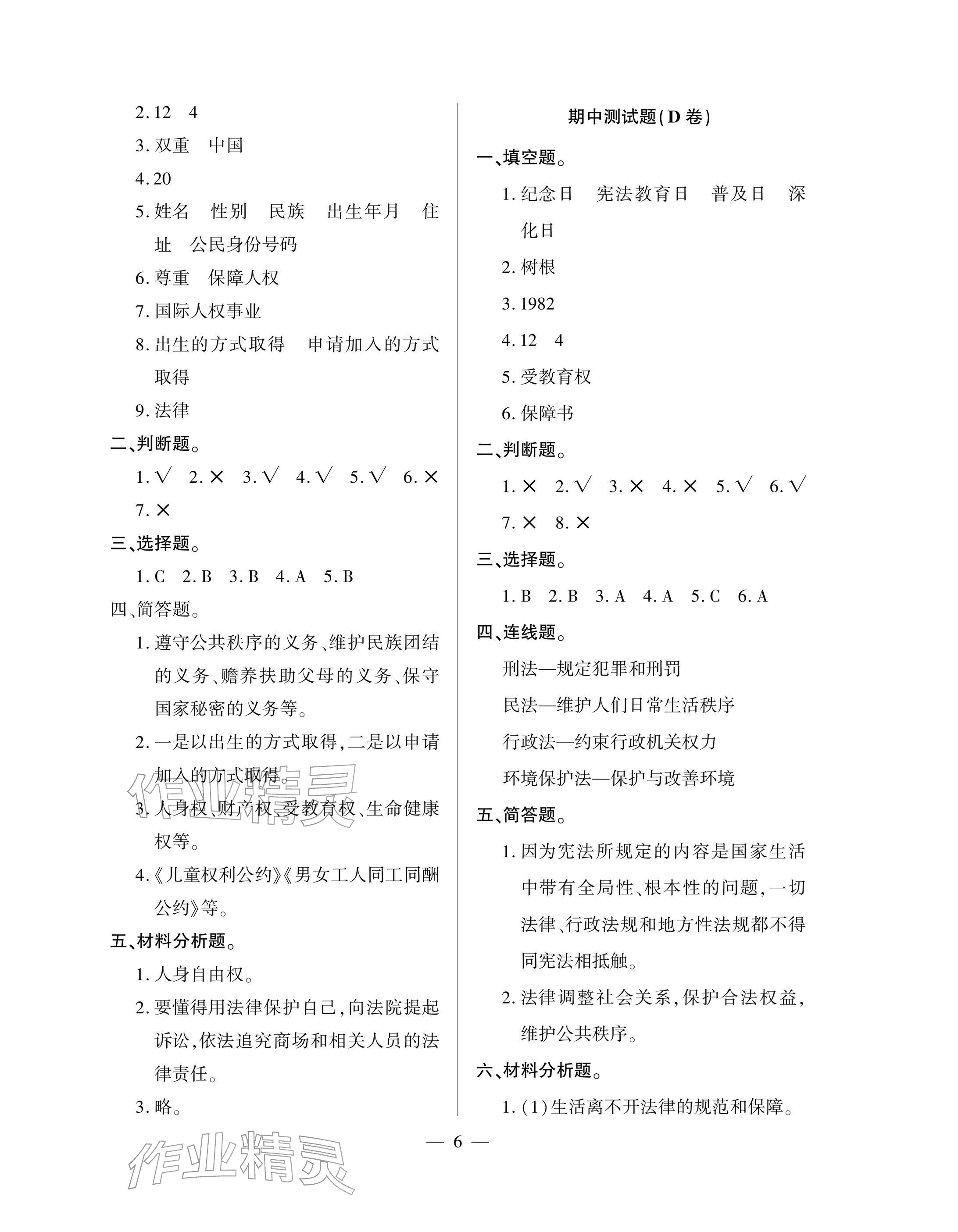 注:目前有些书本章节名称可能整理的还不是很完善,但都是按照顺序排列的,请同学们按照顺序仔细查找。练习册 2025年单元自测试卷青岛出版社六年级道德与法治上册人教版 答案主要是用来给同学们做完题方便对答案用的,请勿直接抄袭。