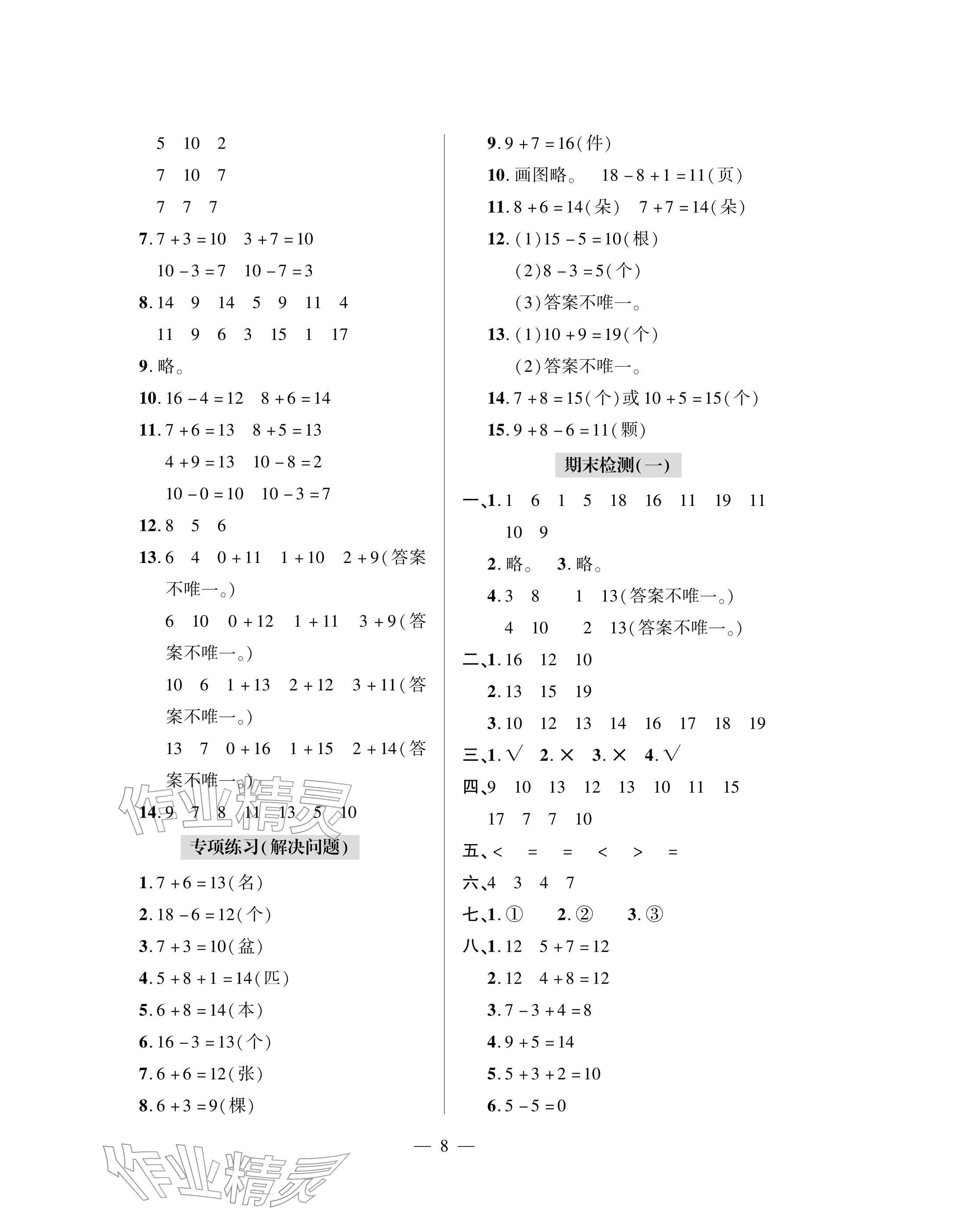 注:目前有些书本章节名称可能整理的还不是很完善,但都是按照顺序排列的,请同学们按照顺序仔细查找。练习册 2025年单元自测试卷青岛出版社一年级数学上册人教版 答案主要是用来给同学们做完题方便对答案用的,请勿直接抄袭。