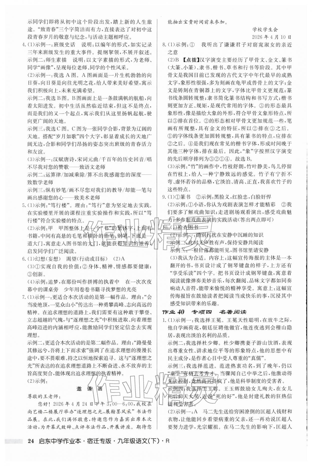 注:目前有些书本章节名称可能整理的还不是很完善,但都是按照顺序排列的,请同学们按照顺序仔细查找。练习册 2026年启东中学作业本九年级语文下册人教版宿迁专版 答案主要是用来给同学们做完题方便对答案用的,请勿直接抄袭。