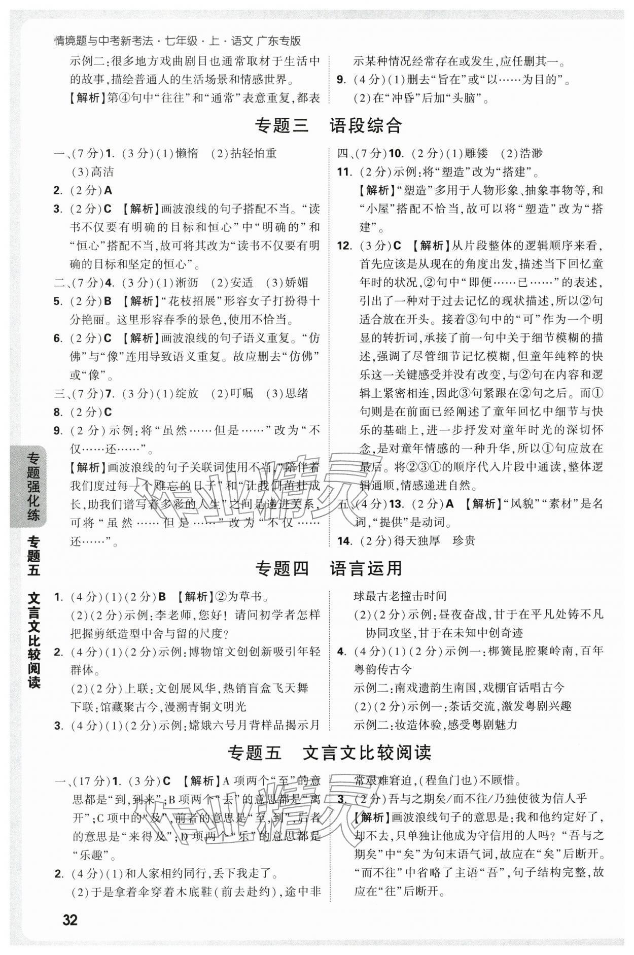 注:目前有些书本章节名称可能整理的还不是很完善,但都是按照顺序排列的,请同学们按照顺序仔细查找。练习册 2025年万唯中考情境题七年级语文上册人教版广东专版 答案主要是用来给同学们做完题方便对答案用的,请勿直接抄袭。