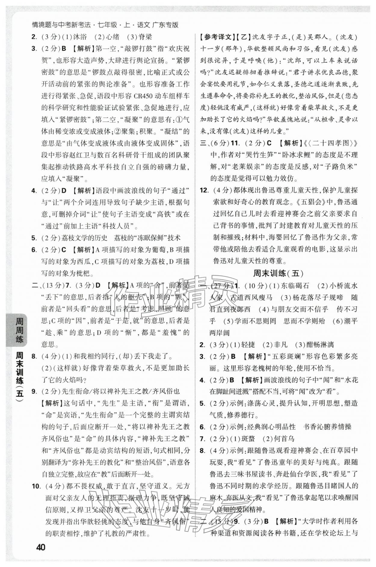 2025年万唯中考情境题七年级语文上册人教版广东专版