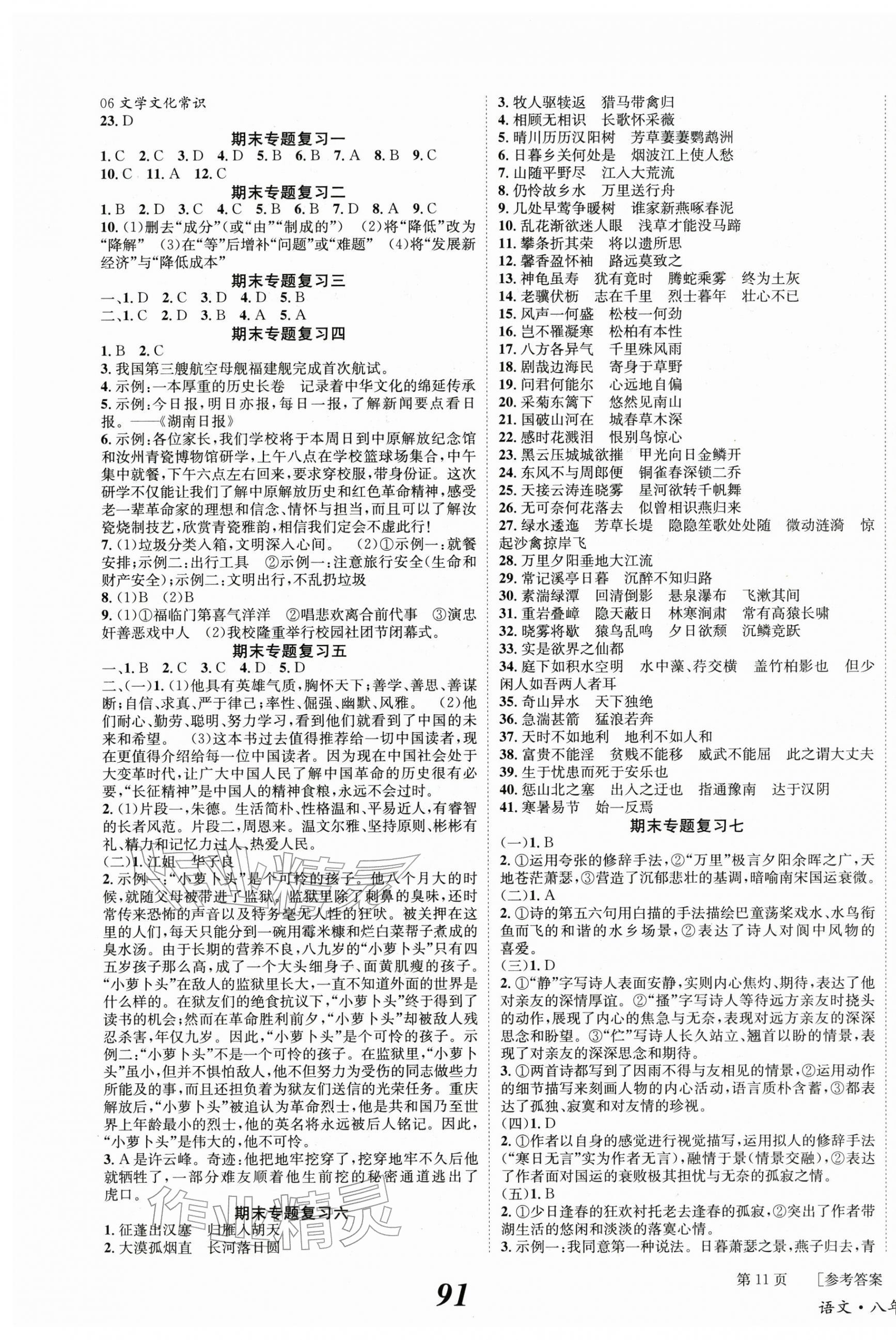 注:目前有些书本章节名称可能整理的还不是很完善,但都是按照顺序排列的,请同学们按照顺序仔细查找。练习册 2025年全效学习学业评价方案八年级语文上册人教版 答案主要是用来给同学们做完题方便对答案用的,请勿直接抄袭。