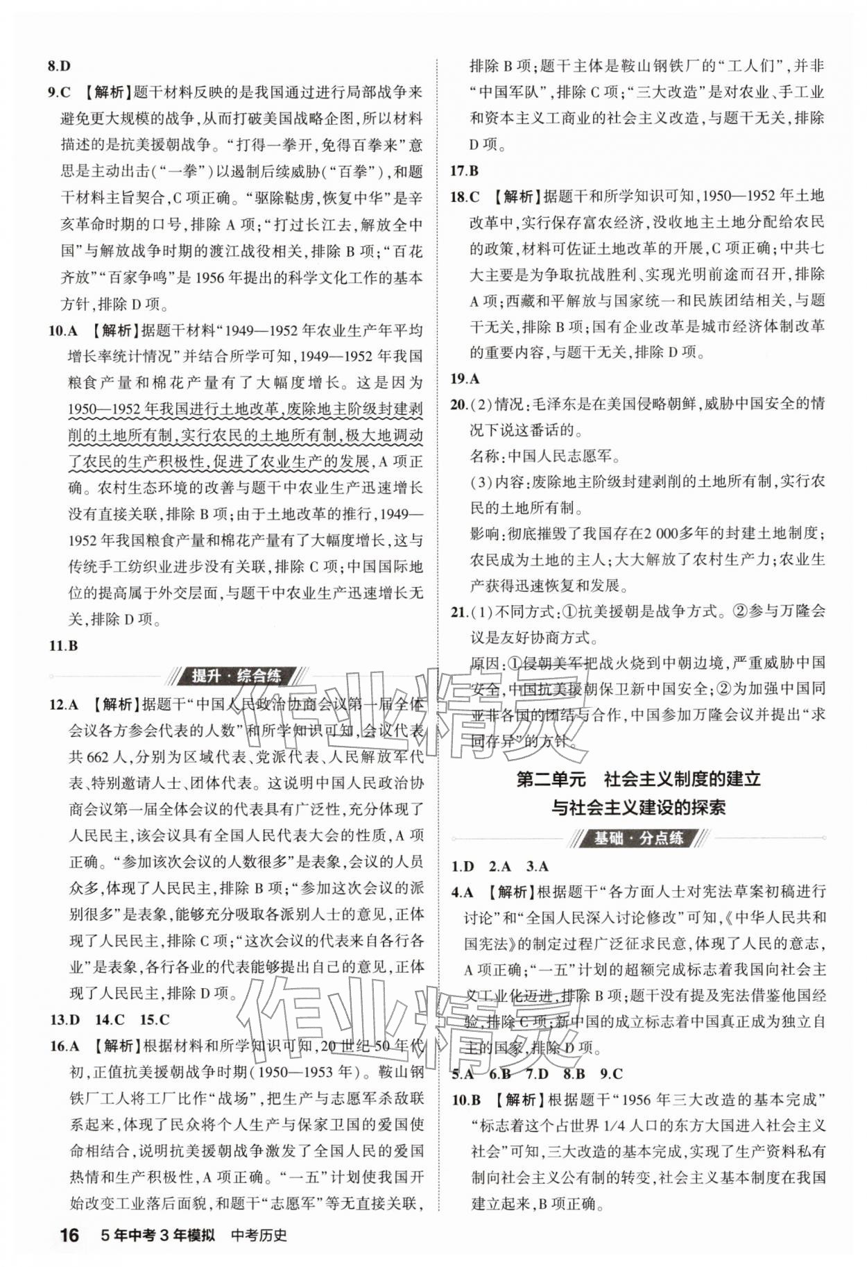 注:目前有些书本章节名称可能整理的还不是很完善,但都是按照顺序排列的,请同学们按照顺序仔细查找。练习册 2026年5年中考3年模拟中考历史 答案主要是用来给同学们做完题方便对答案用的,请勿直接抄袭。
