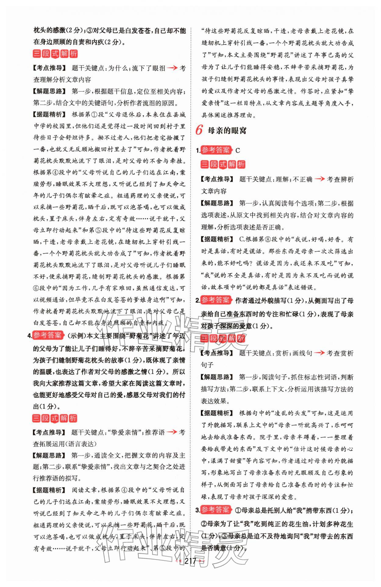 精英家教网> 2026年一本中考现代文阅读技能训练100篇 > 第7页 参考答案