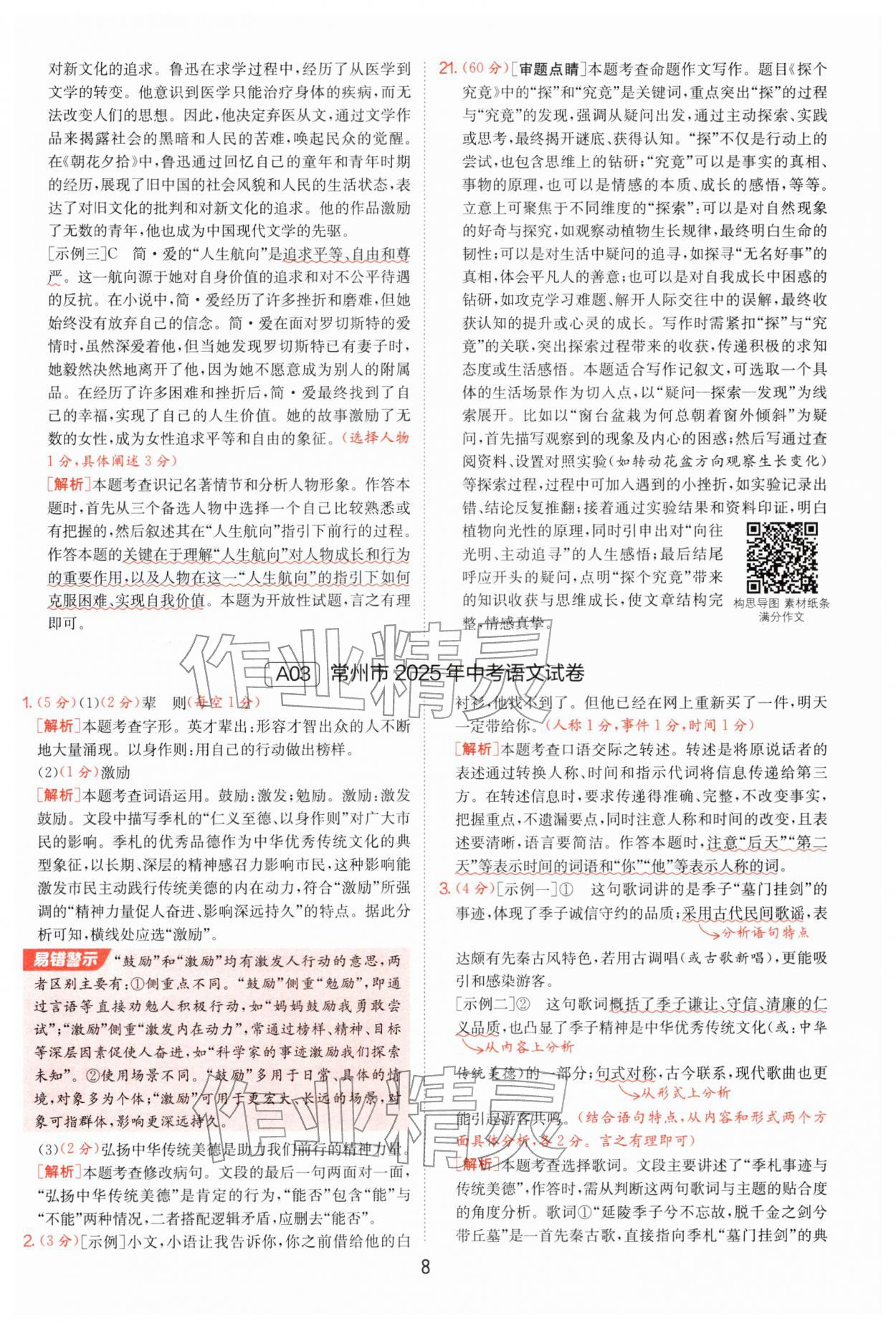 精英家教网> 2026年江苏13大市中考试卷精选语文 > 第8页 参考答案
