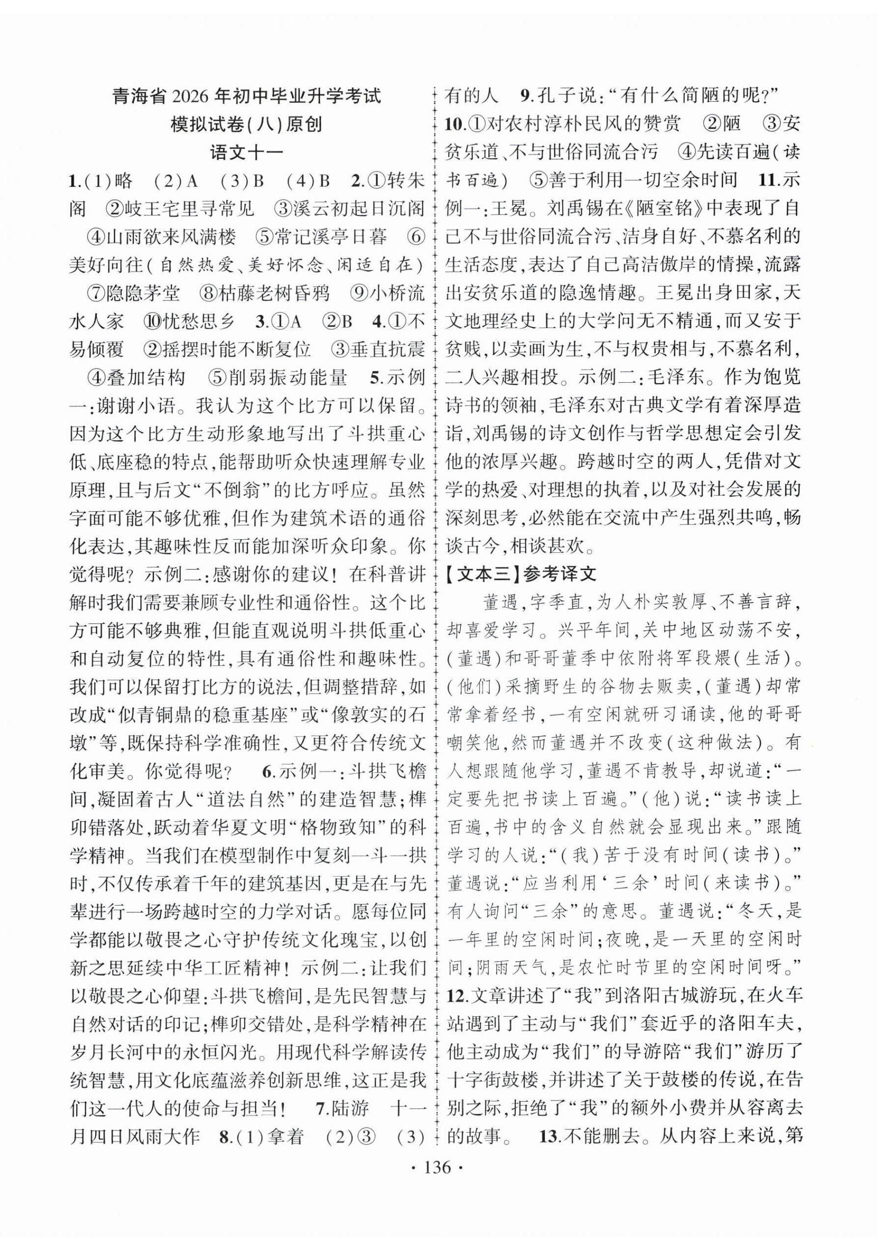 注:目前有些书本章节名称可能整理的还不是很完善,但都是按照顺序排列的,请同学们按照顺序仔细查找。练习册 2026年青海中考金榜名卷模拟试卷语文 答案主要是用来给同学们做完题方便对答案用的,请勿直接抄袭。
