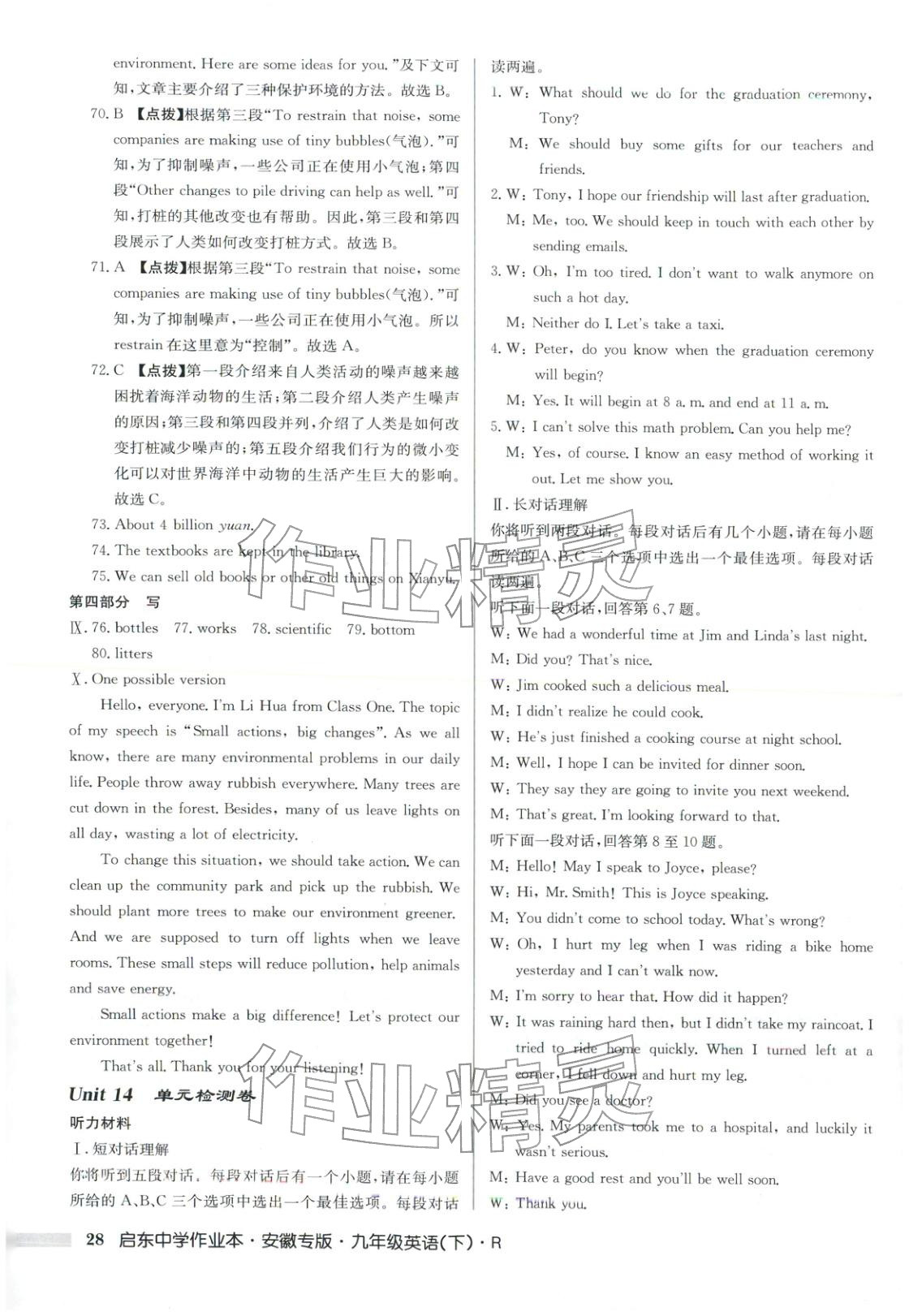 注:目前有些书本章节名称可能整理的还不是很完善,但都是按照顺序排列的,请同学们按照顺序仔细查找。练习册 2026年启东中学作业本九年级英语下册人教版安徽专版 答案主要是用来给同学们做完题方便对答案用的,请勿直接抄袭。
