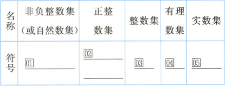 知识点三 ⑴N ⑵N∗或N+ ⑶Z ⑷Q ⑸R