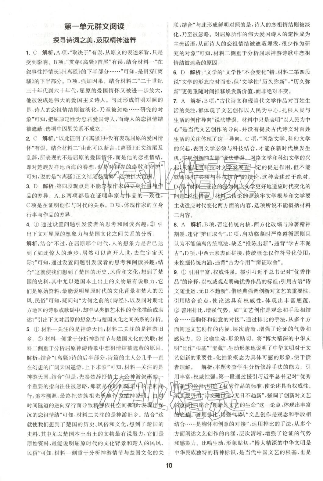 精英家教网> 2025年通成学典课时作业本高中语文选择性必修下册人教版 > 第10页 参考答案