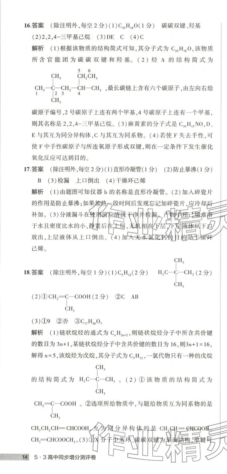 注:目前有些书本章节名称可能整理的还不是很完善,但都是按照顺序排列的,请同学们按照顺序仔细查找。练习册 2025年5年高考3年模拟高中化学选择性必修第三册苏教版 答案主要是用来给同学们做完题方便对答案用的,请勿直接抄袭。