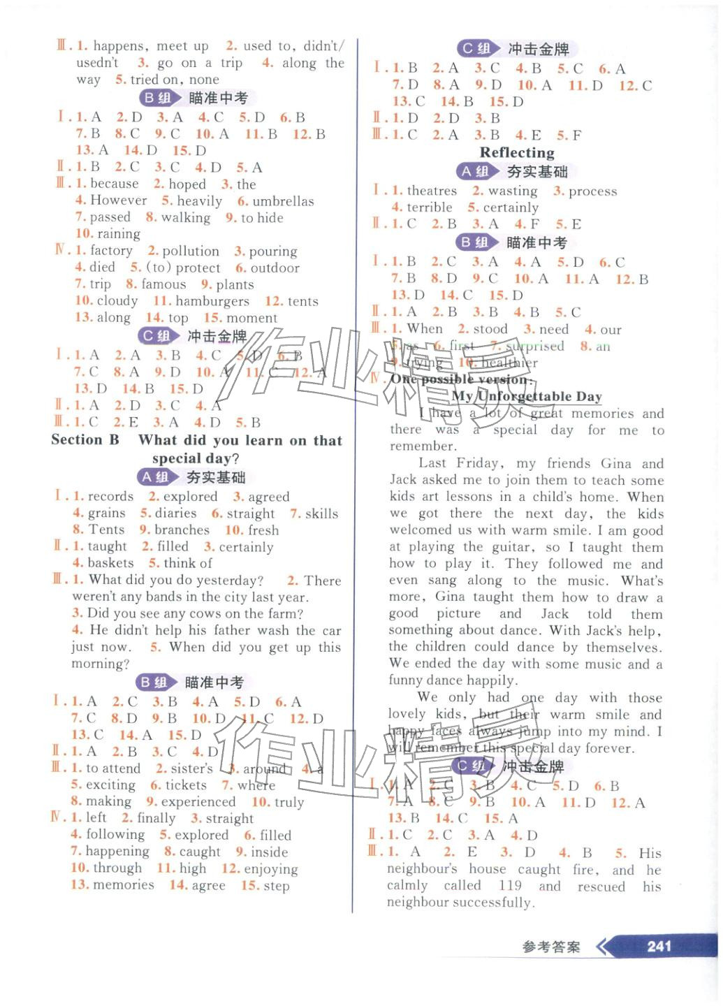注:目前有些书本章节名称可能整理的还不是很完善,但都是按照顺序排列的,请同学们按照顺序仔细查找。练习册 2026年尖子生培优教材七年级英语下册人教版 答案主要是用来给同学们做完题方便对答案用的,请勿直接抄袭。