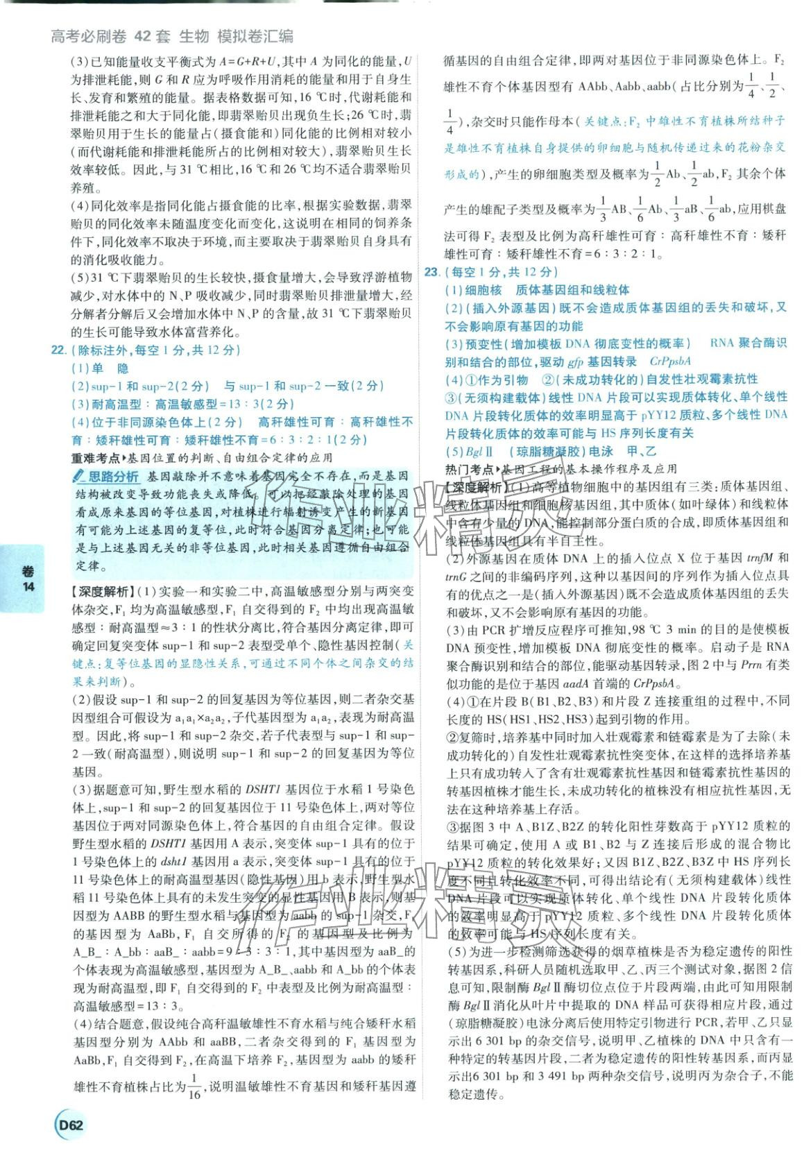 2026年理想树图书高考必刷卷42套模拟卷汇编高中生物全一册通用版江苏专版