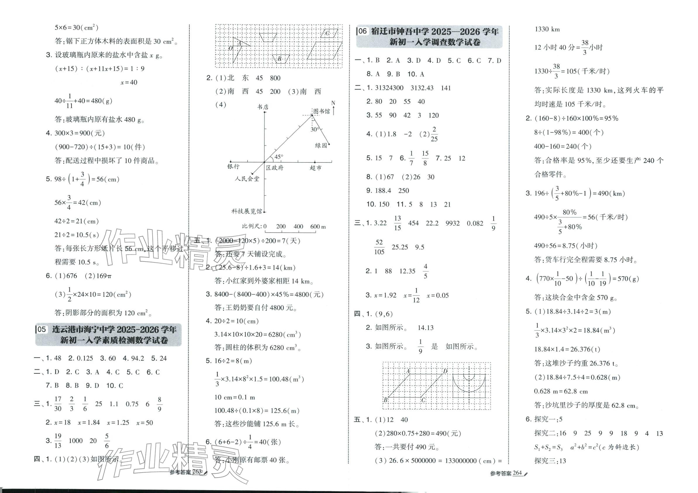 注:目前有些书本章节名称可能整理的还不是很完善,但都是按照顺序排列的,请同学们按照顺序仔细查找。练习册 2026年学霸小学毕业升学考试真题试卷精选六年级数学全一册通用版江苏专版 答案主要是用来给同学们做完题方便对答案用的,请勿直接抄袭。