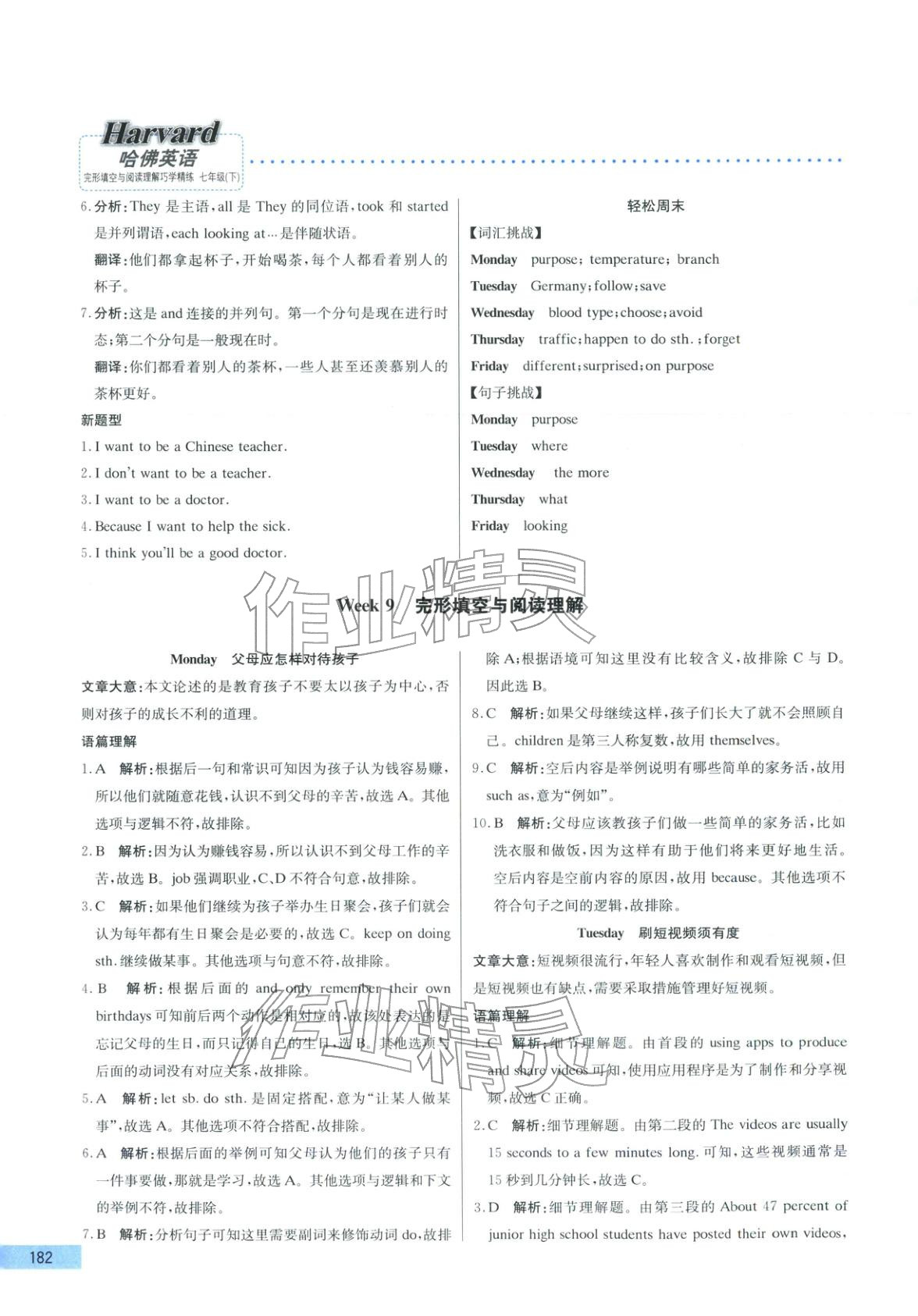 2026年哈佛英语完形填空与阅读理解巧学精练七年级英语下册