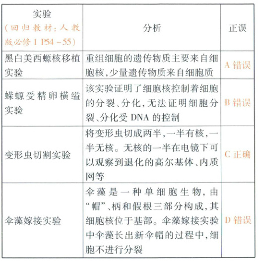 3. 关于探究细胞核功能实验的叙述,正确的是