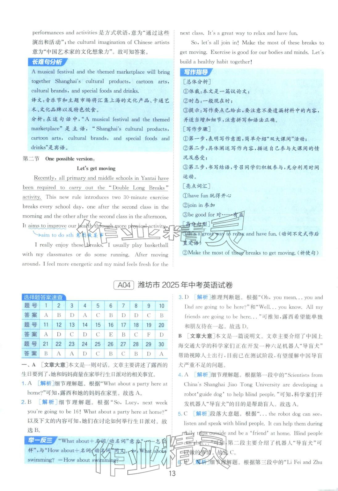 注:目前有些书本章节名称可能整理的还不是很完善,但都是按照顺序排列的,请同学们按照顺序仔细查找。练习册 2026年山东省中考试卷精选九年级英语 答案主要是用来给同学们做完题方便对答案用的,请勿直接抄袭。